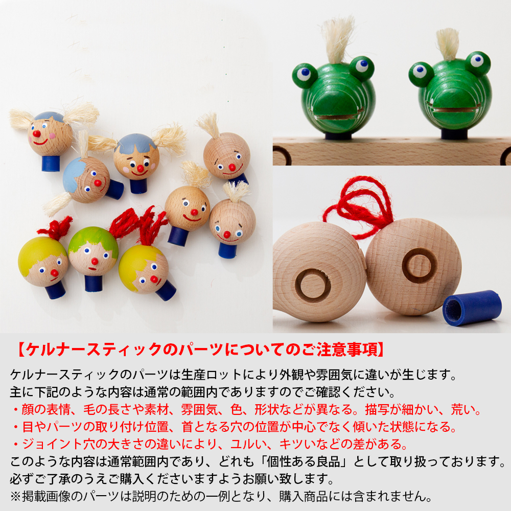 顔や体になるようなパーツは含まれていませんので、お持ちのケルナースティックに合わせてご使用ください。