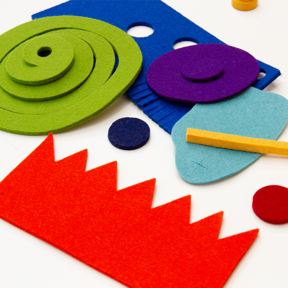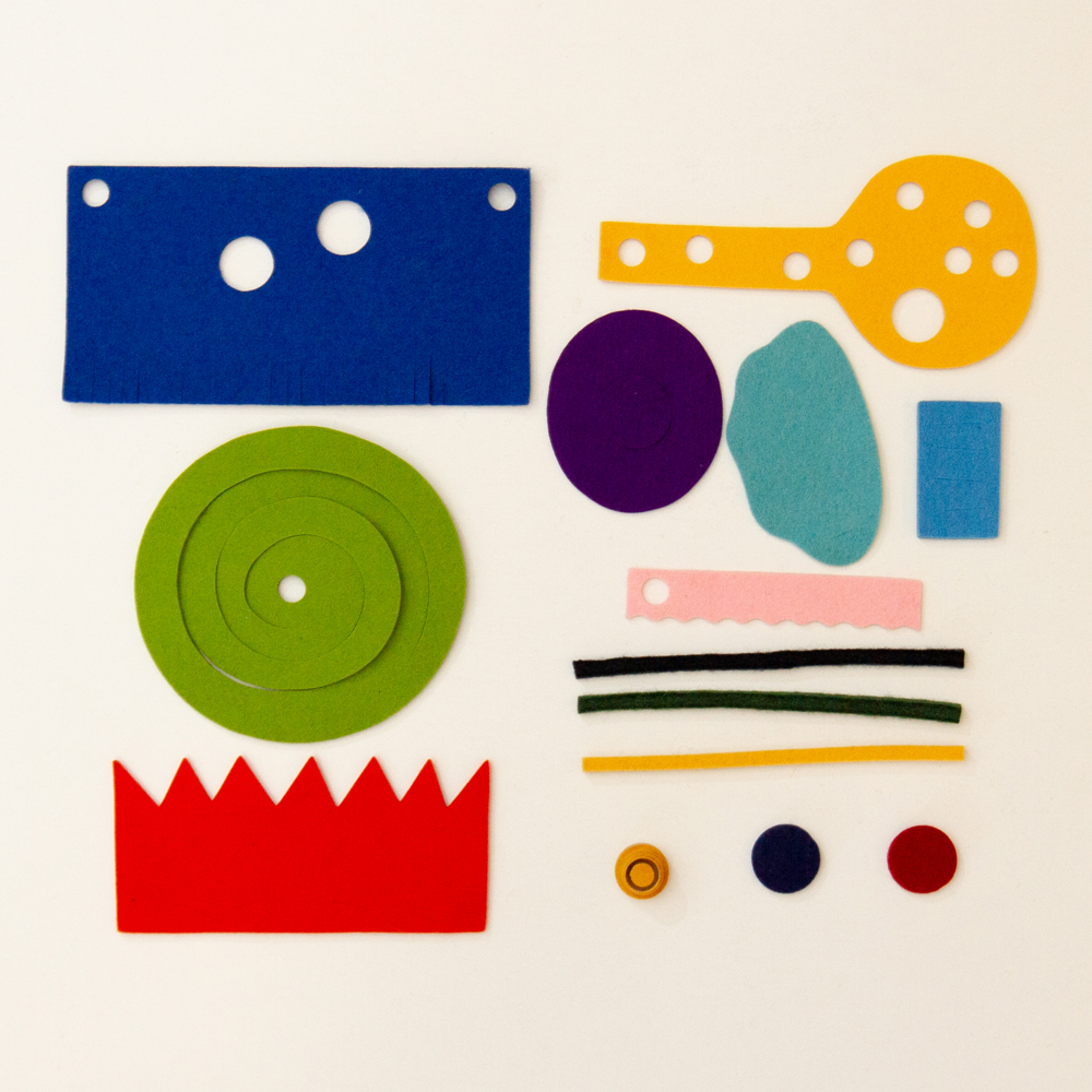 いろいろなカタチにカットされ不思議なフェルト布たち。
