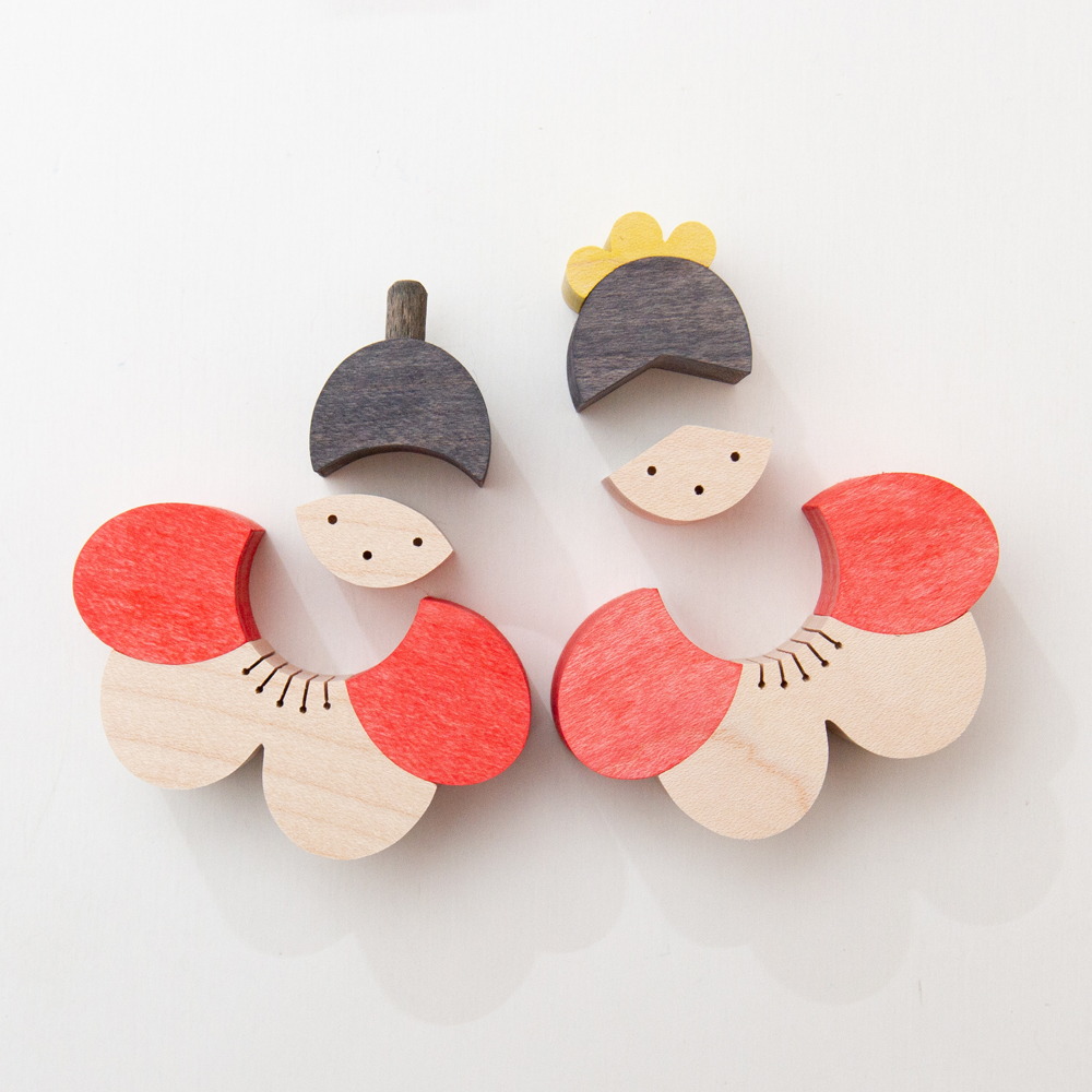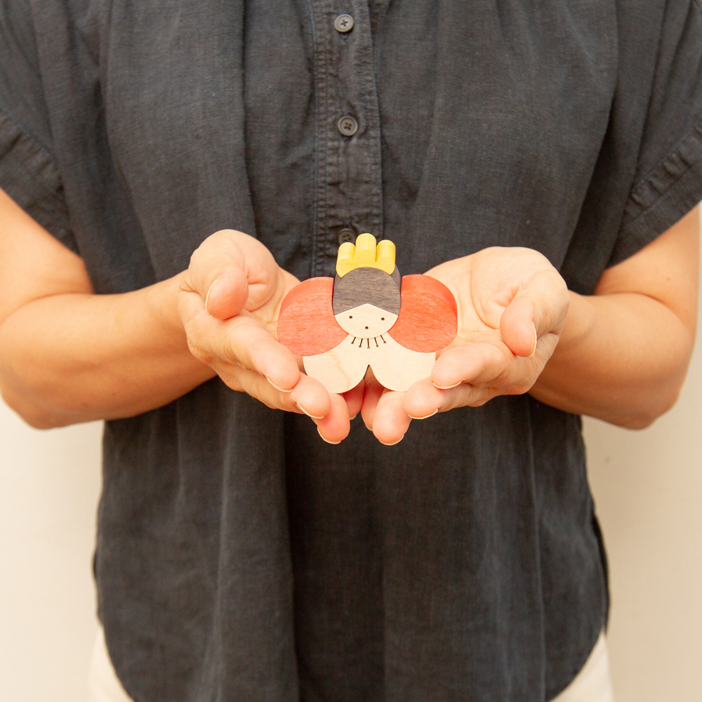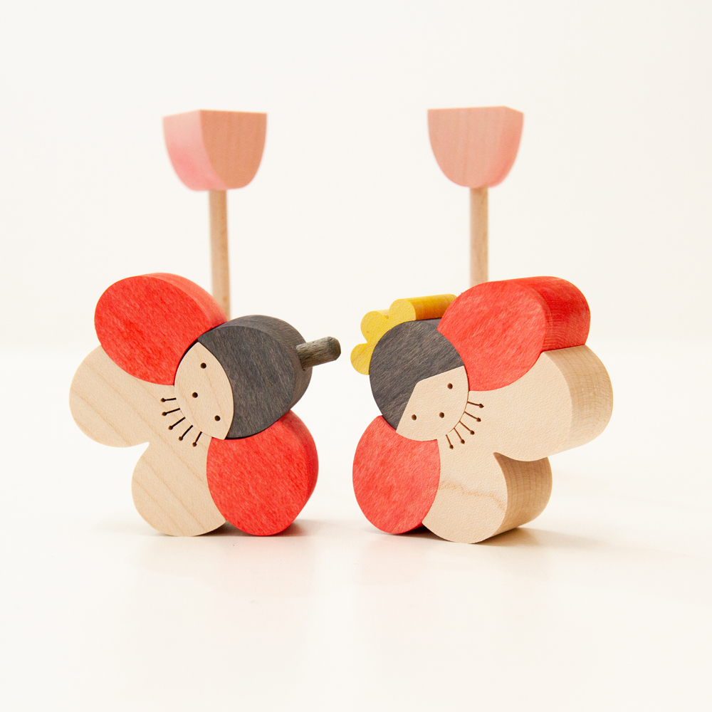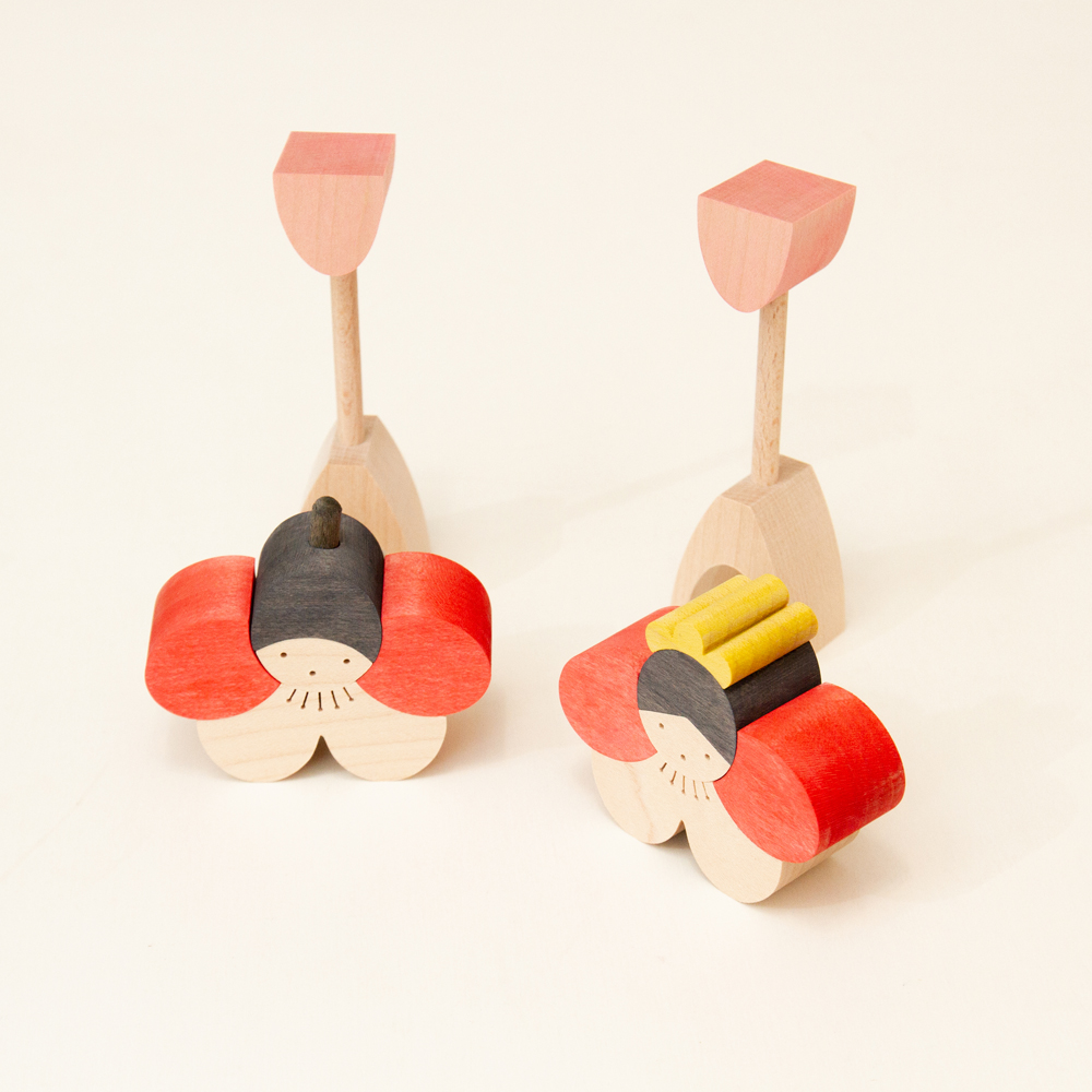 木の手触りが心地よく、子どもが「遊んで組み替えても良い」節句人形。