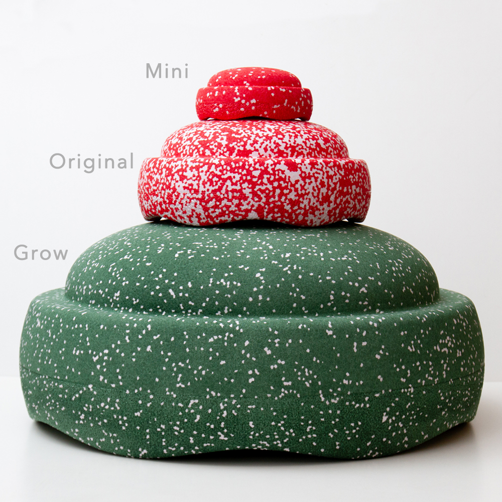 遊び方はサイズによりダイナミックな遊びから小さな卓上遊びまで様々な遊びや運動に活躍します。 Growは通常サイズのOriginalと比較して直径が約2倍、高さも約2倍。