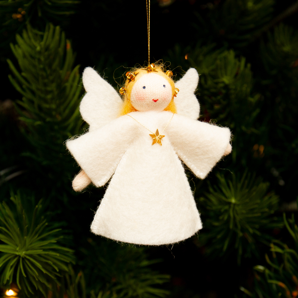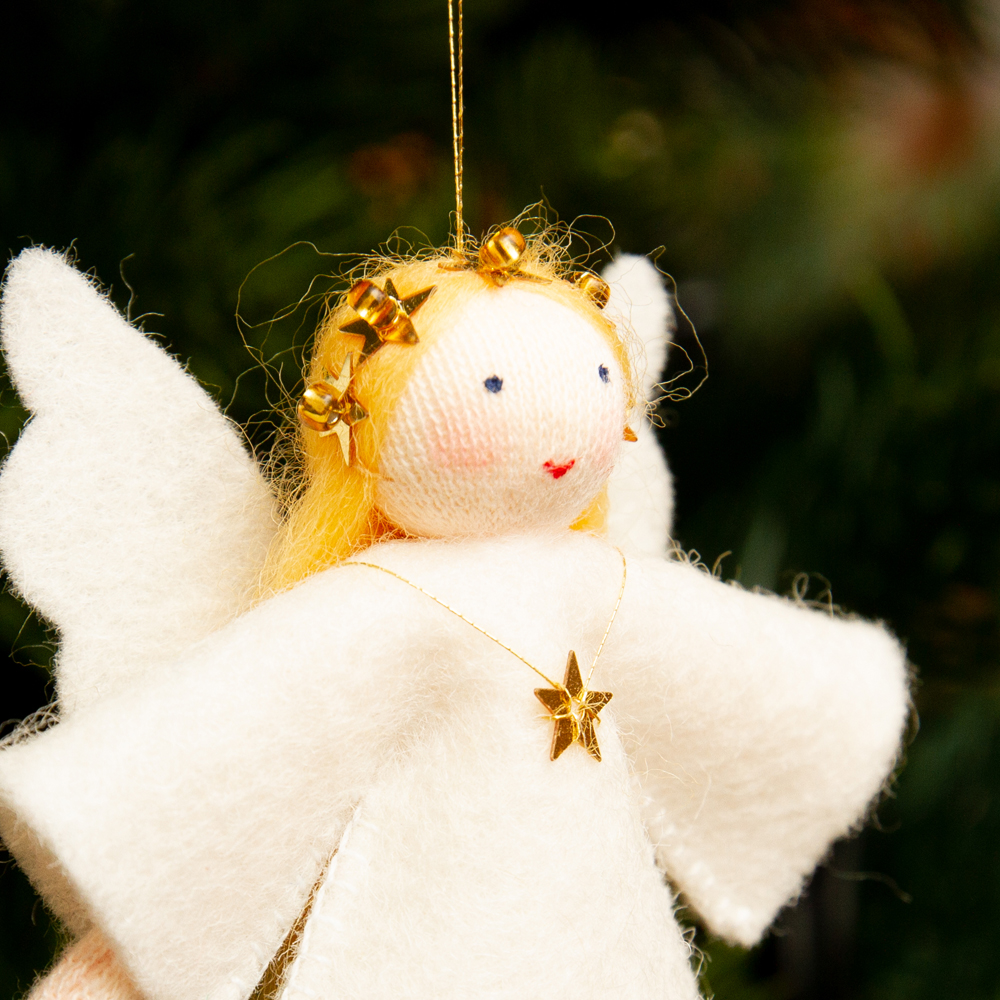 「リトルエンジェル」はツリーに映える白い姿、きらきらと輝く星の装飾と大きな翼がとても美しいオーナメントです。 手には針金が入っており、曲げてアレンジすることも可能です。
