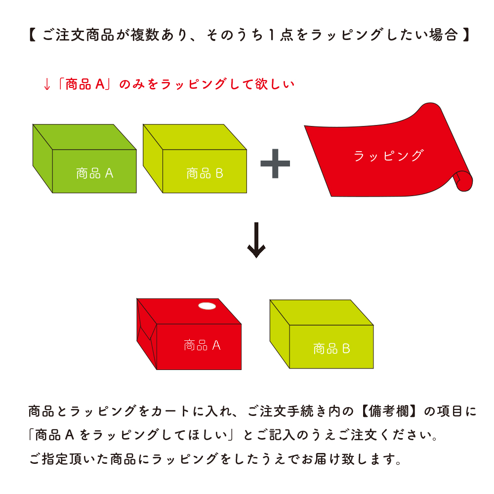 複数の商品をご購入頂き、そのうち一部の商品のみラッピングをご希望される場合は、