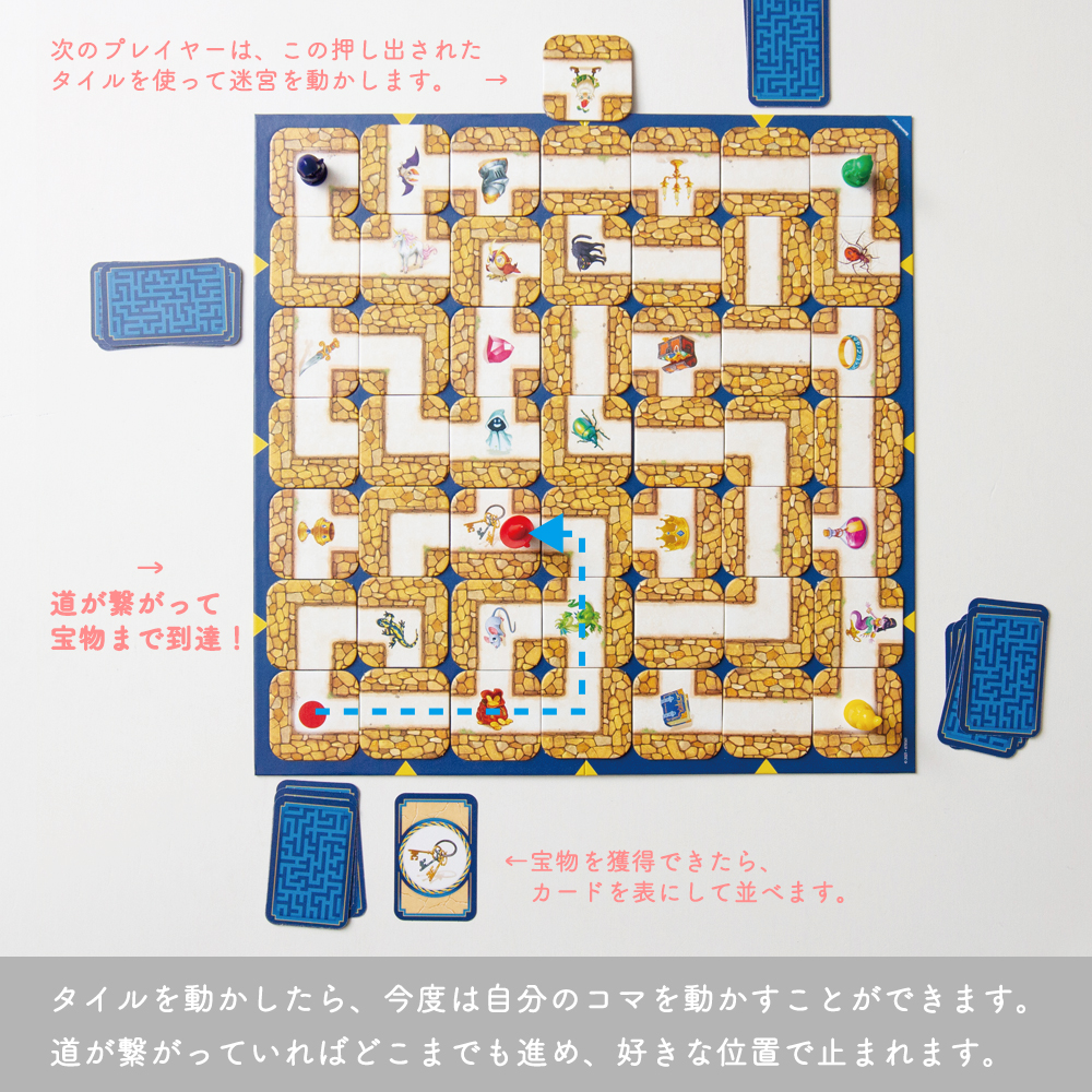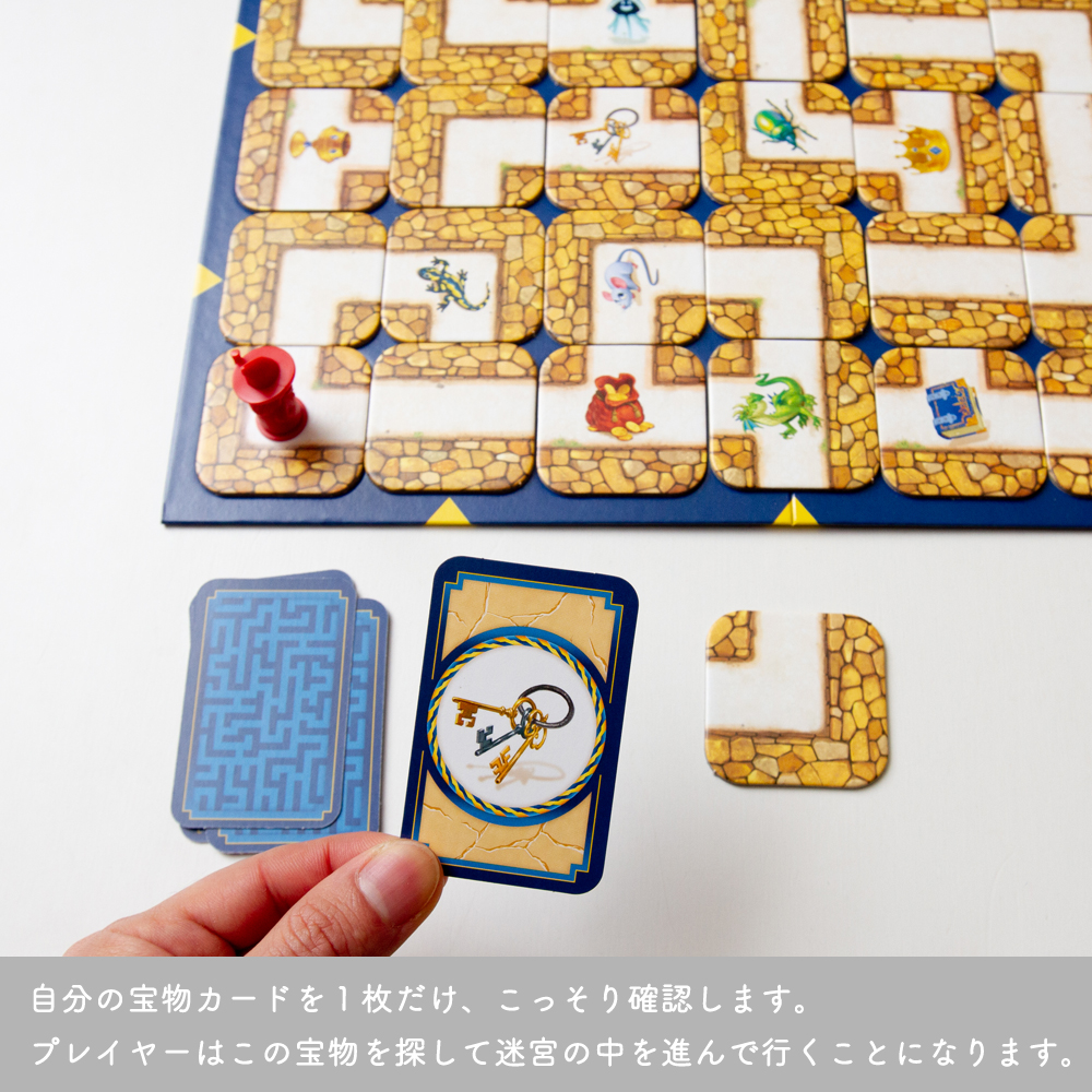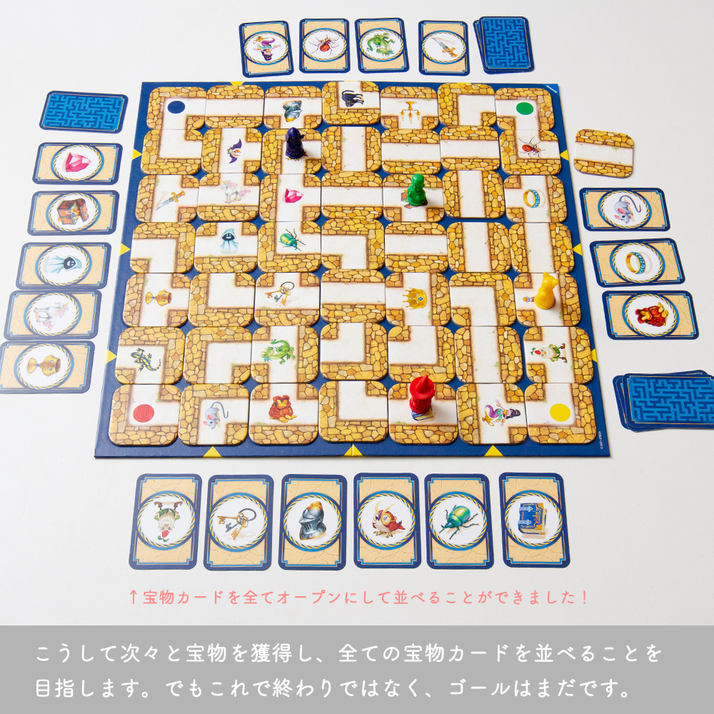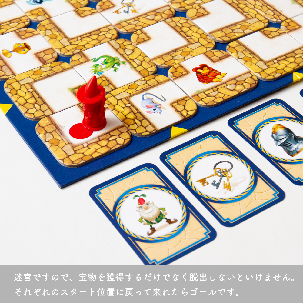 プレイヤーはこの宝物カードの絵柄を迷路上から獲得することを目指します。