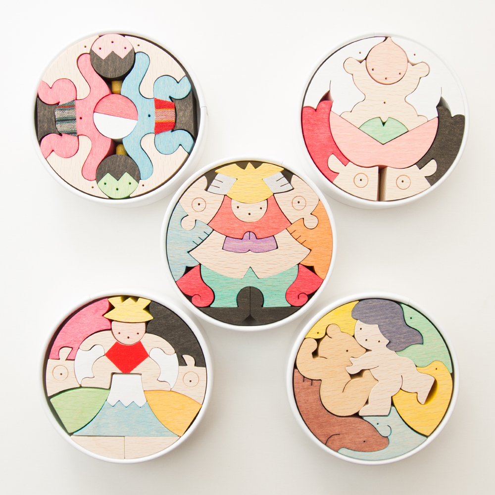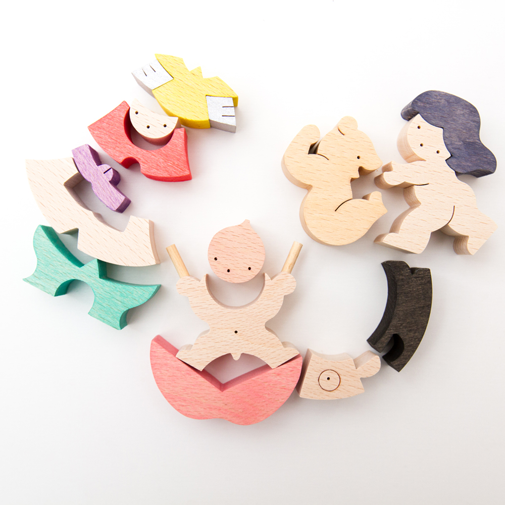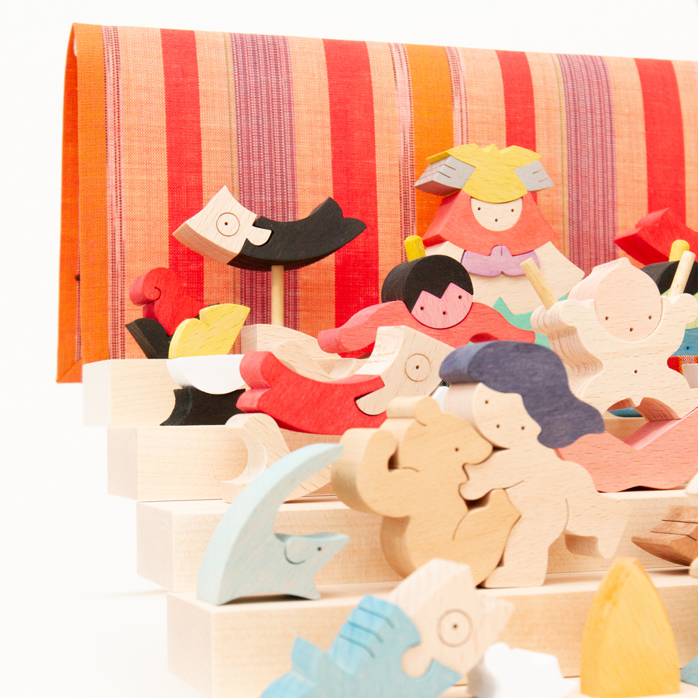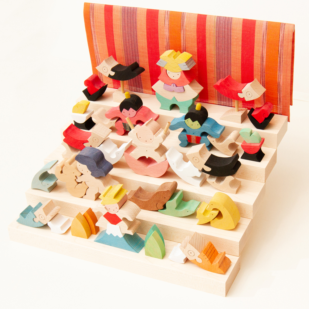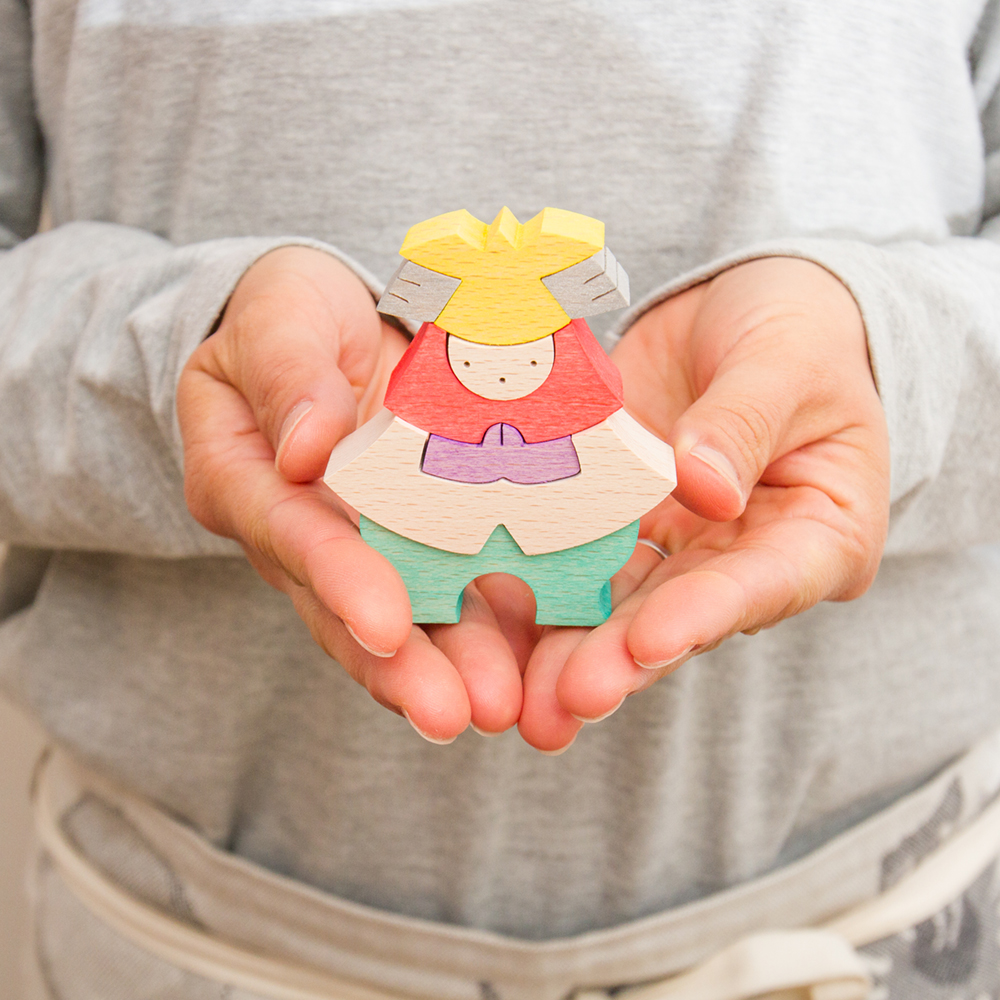 木の手触りが心地よく、子どもが「遊んで組み替えても良い」節句人形。