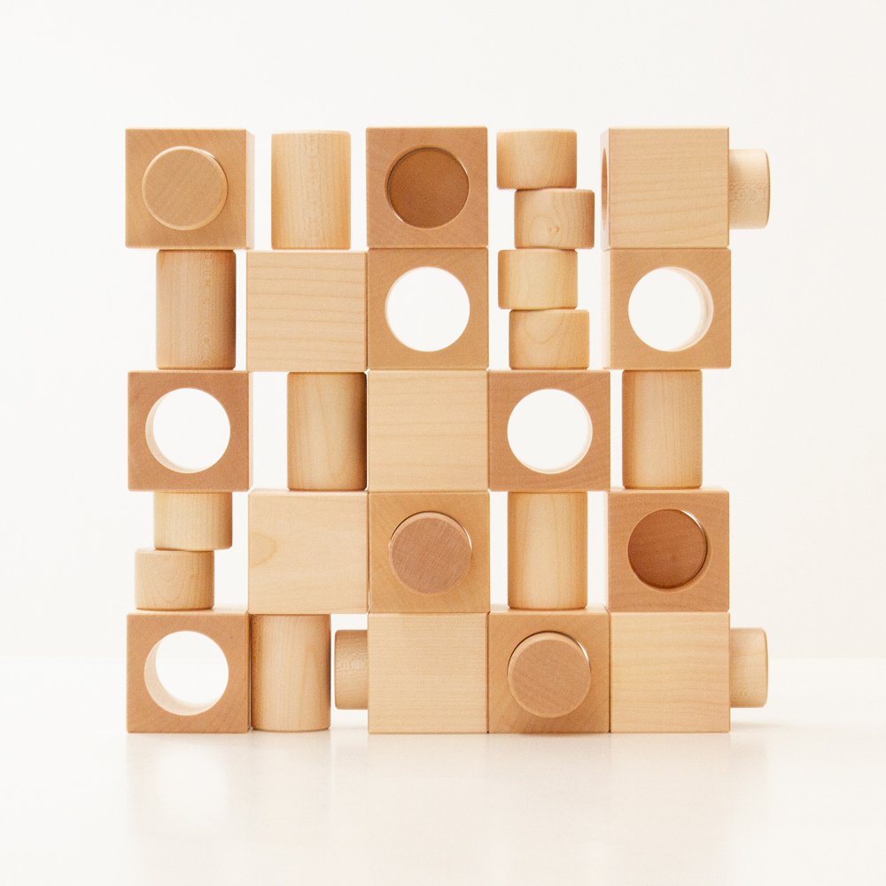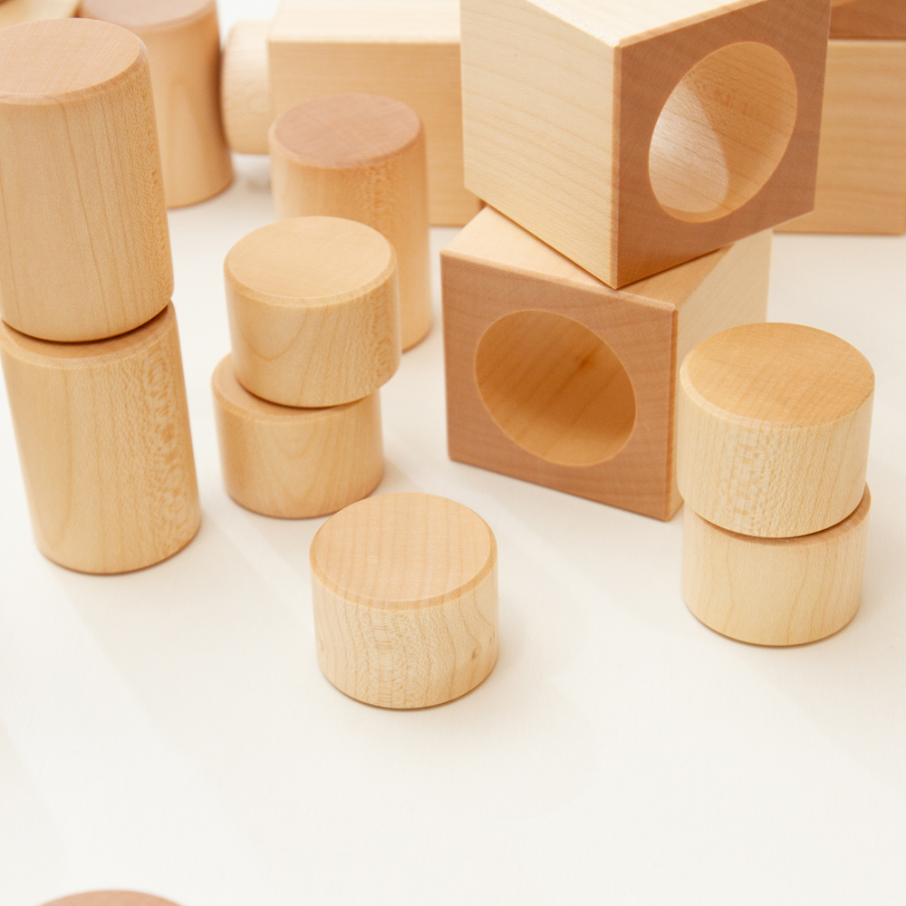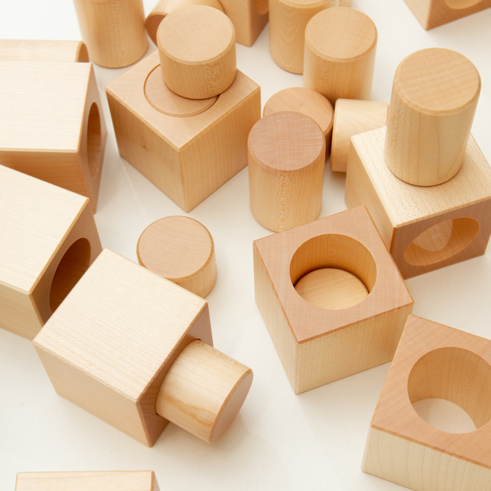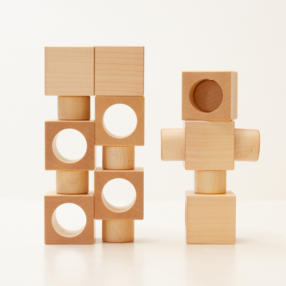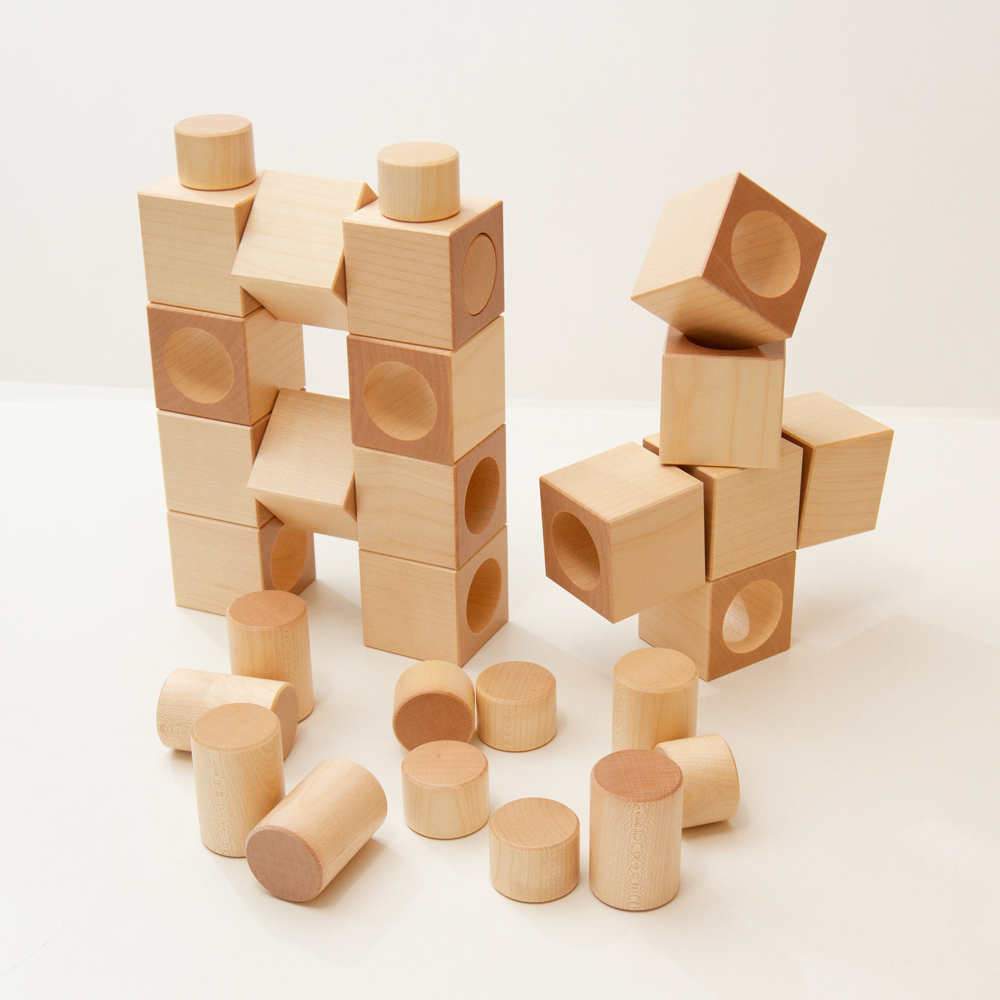 立方体を積み上げたり、円柱をはめ込んでジョイントとして連結したり。はたまた汽車のような楽しいものも作れたり。
