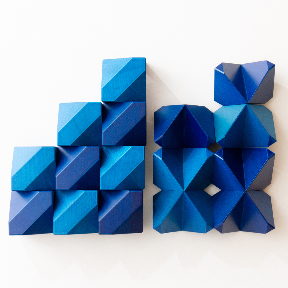 面により異なる深いカットが特徴的で、ピースを置く向きや方向によりそれぞれ異なる表情を見せてくれます。