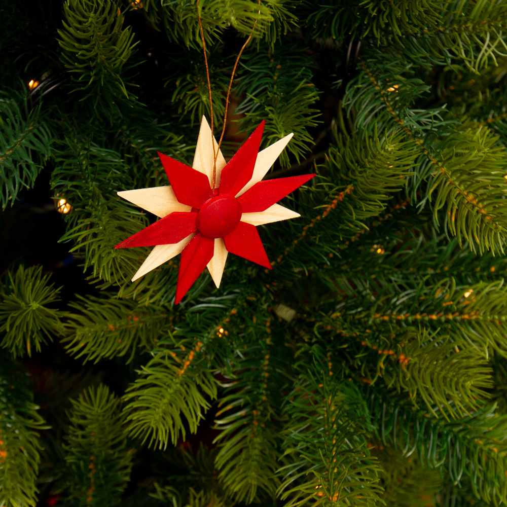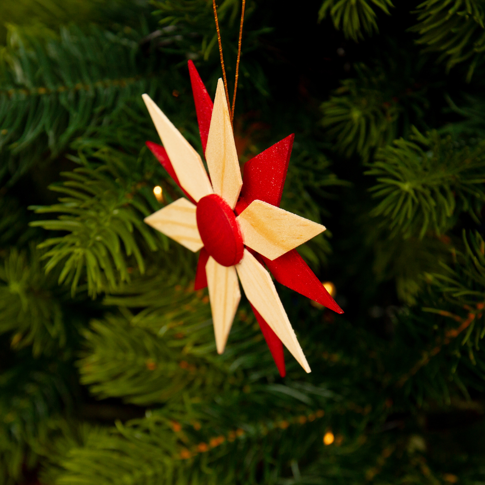 薄い木のパーツを組み合わせたオーナメント。前後の列に交互に配置されたパーツによって形作られた星は、 シンプルでありながら煌びやかさを感じさせてくれます。