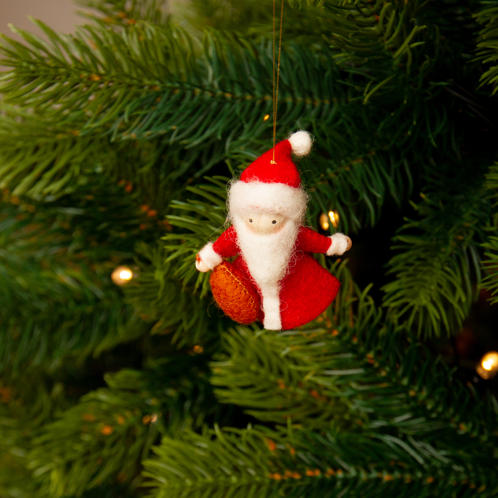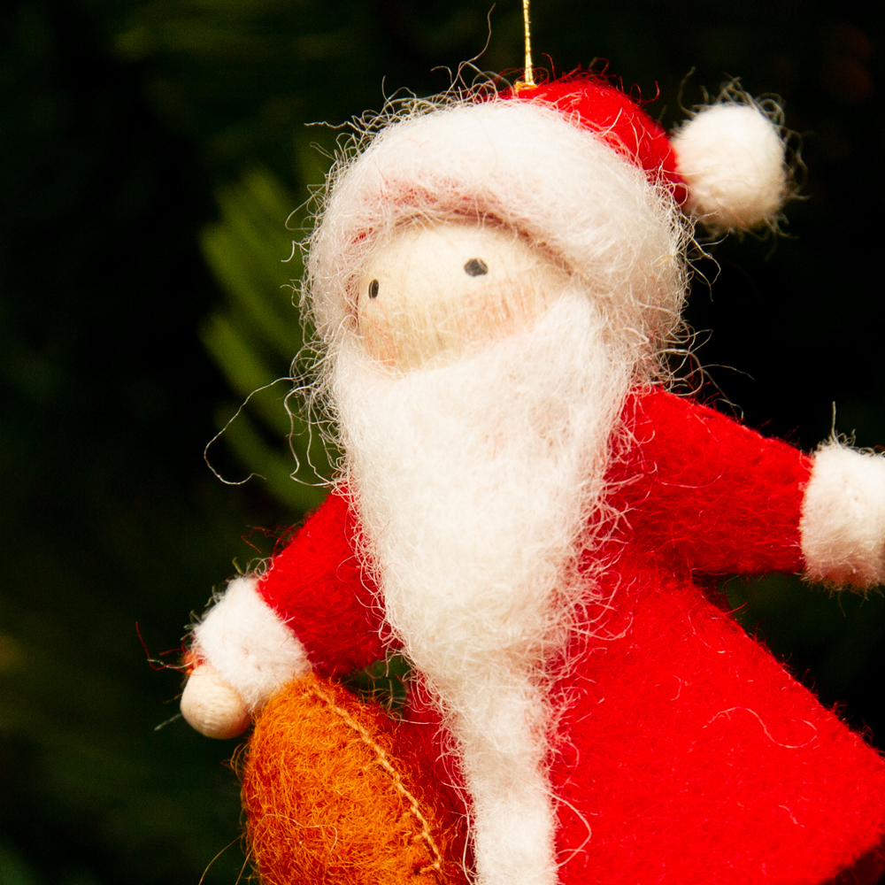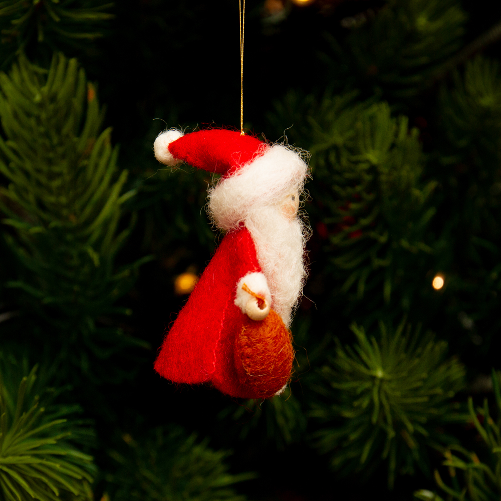 「サンタクロース」のオーナメントは、羊毛で形作られた白いヒゲが特徴的。とても軽いので華奢なツリーにも飾ることができます。