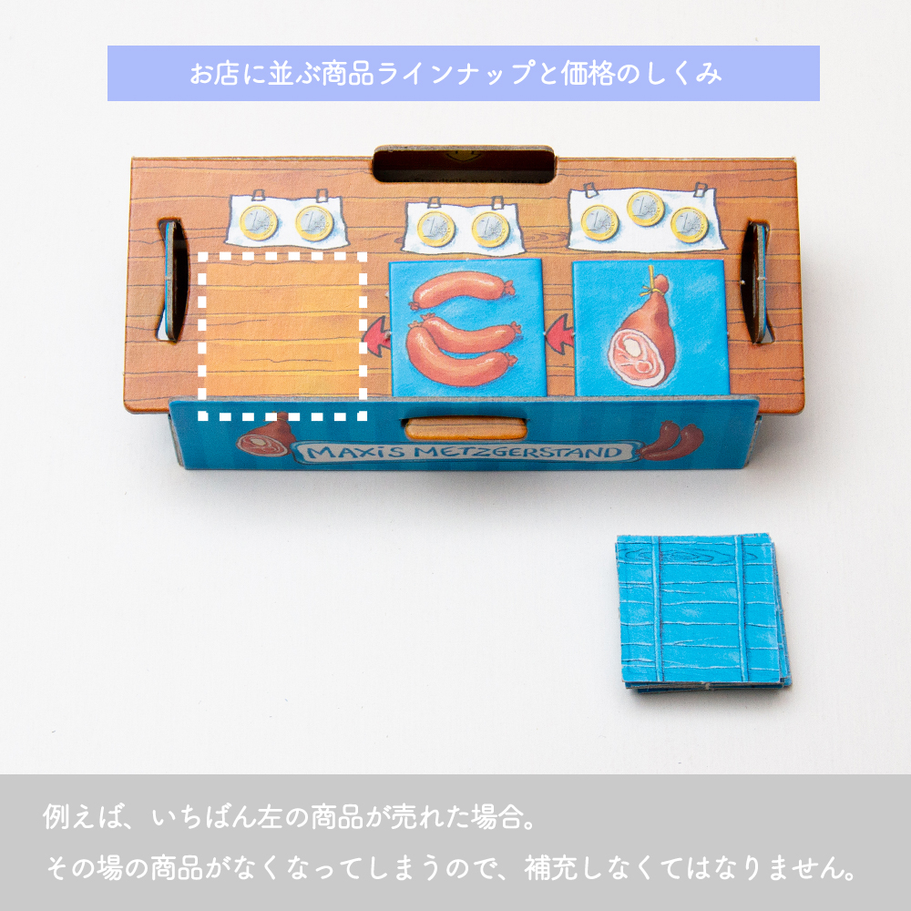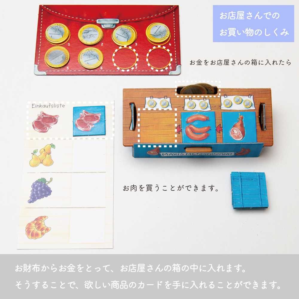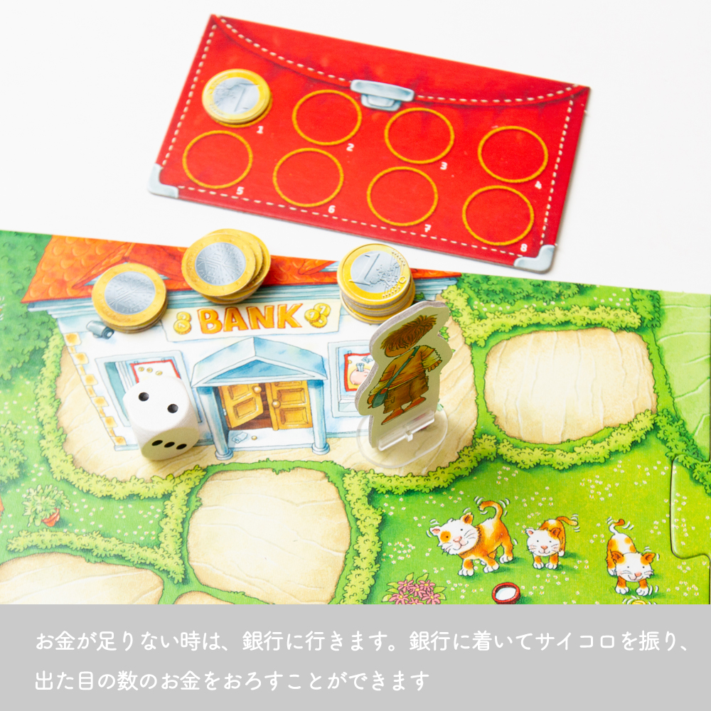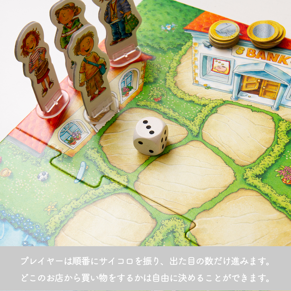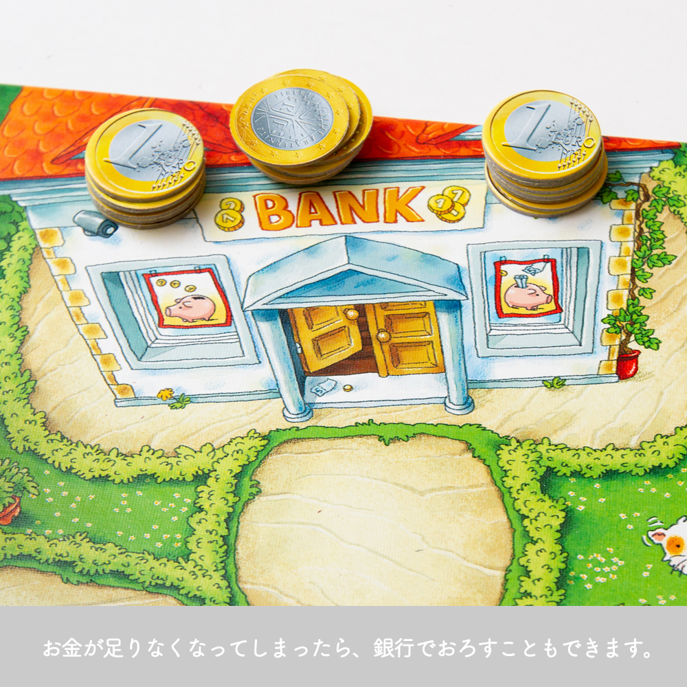 でも、もしお金がなくなってしまったら銀行でお金をおろすこともできます。 お買い物を正確に早くできたプレイヤーが勝者となります。