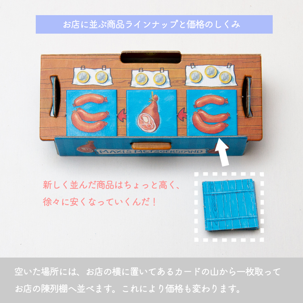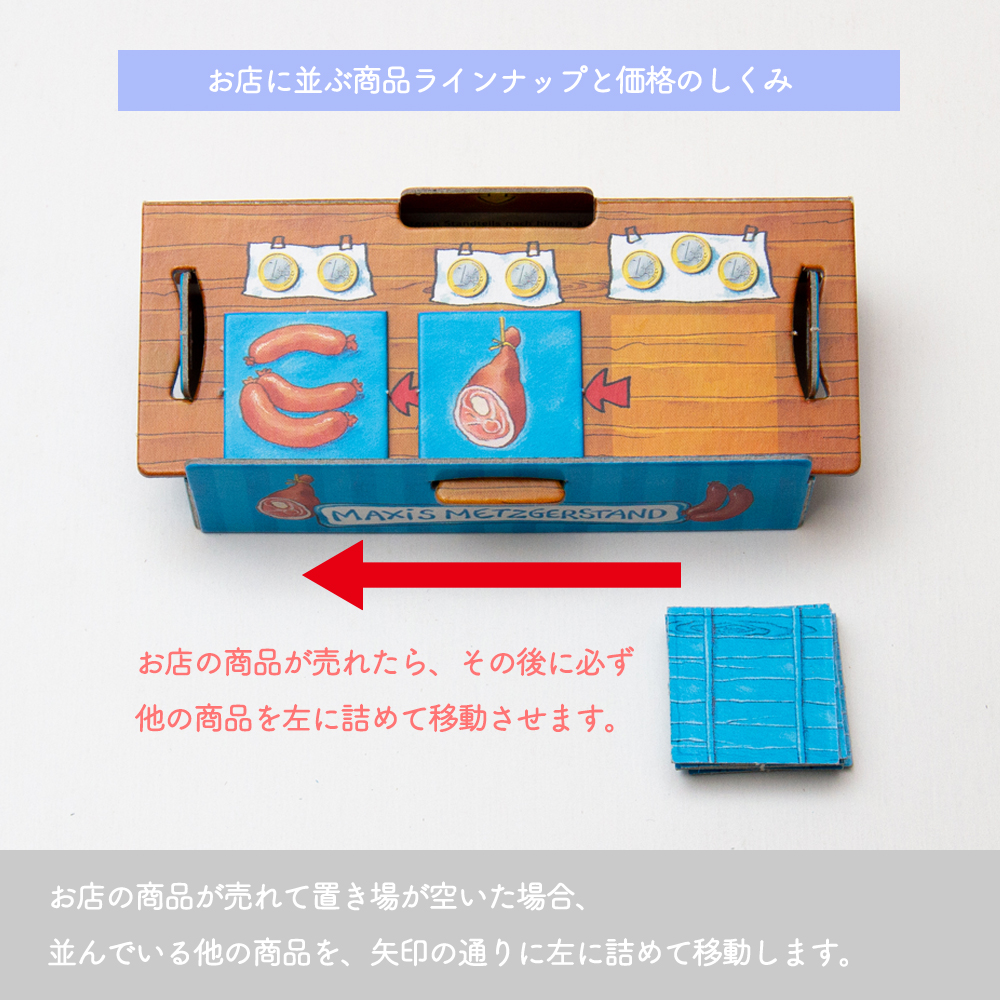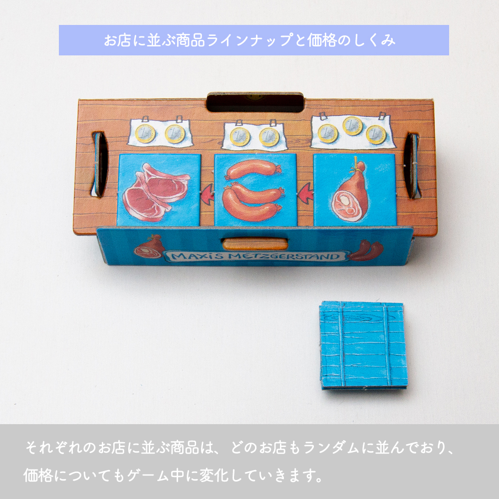 お店に並んでいる商品はランダムに並んでおり、価格もゲームが進行中に変動します。