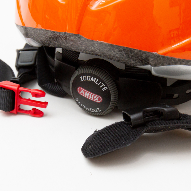 軽く、サイズ調整が簡単にできるドイツABUS製のヘルメット。