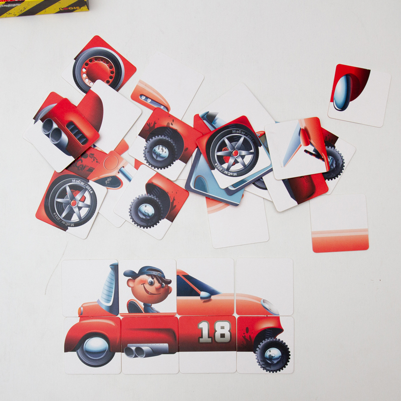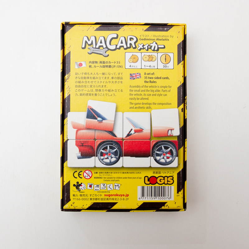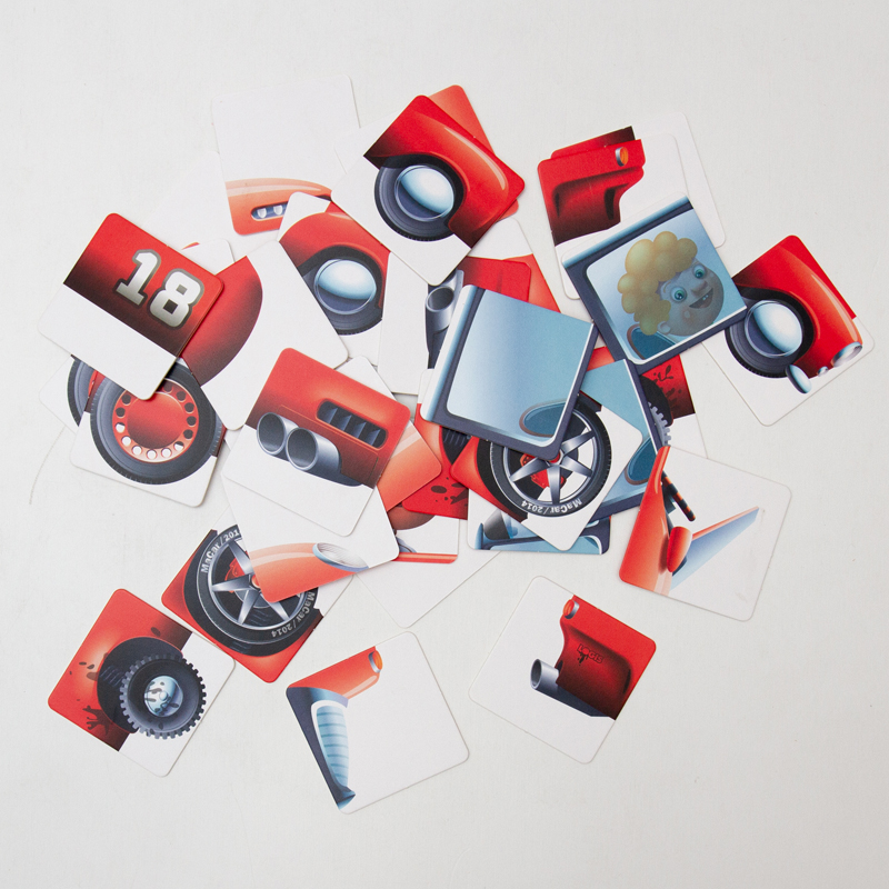 車のパーツが描かれたカードを組み合わせて、早く組み上げることを競うゲーム。