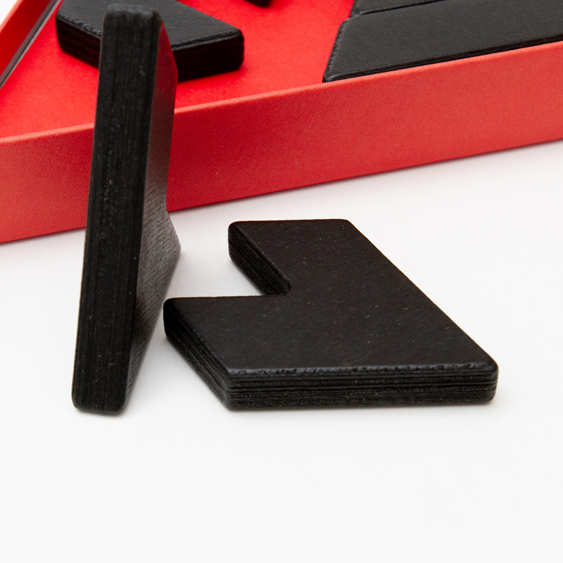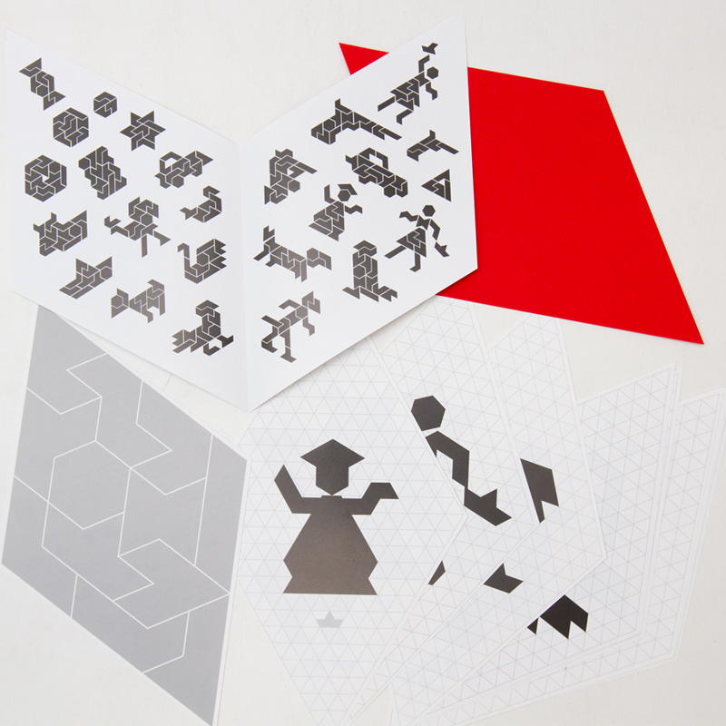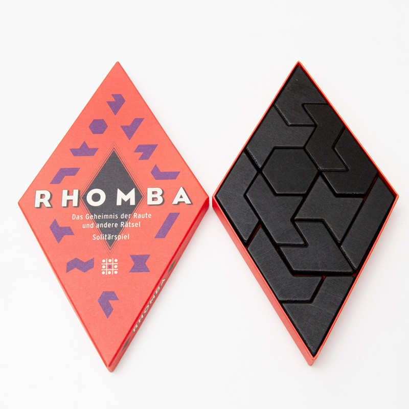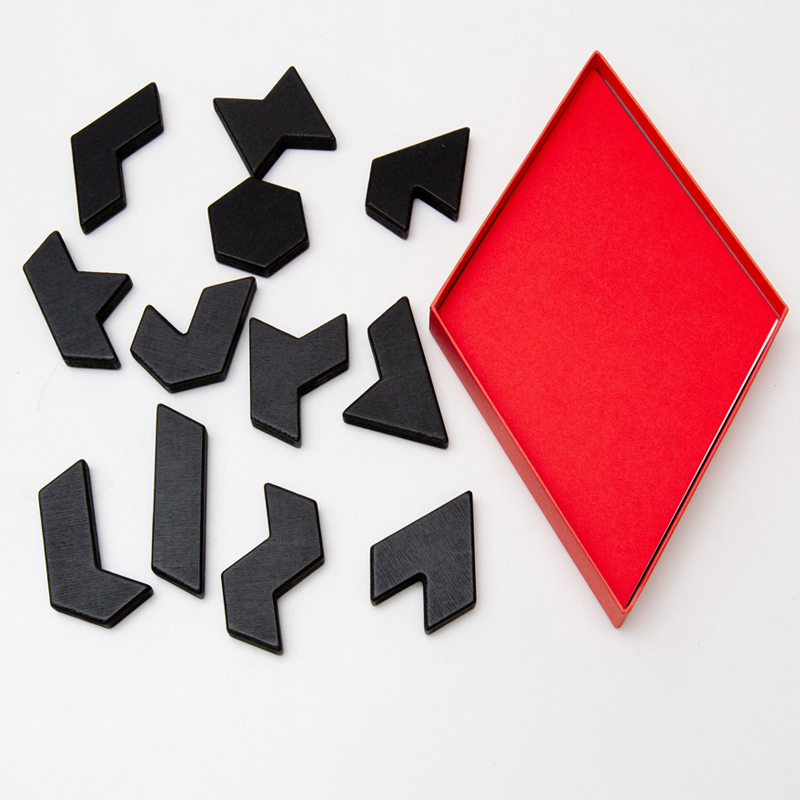 様々な形のピースが入っており、組み合わせてパッケージの菱形を埋めていきます。