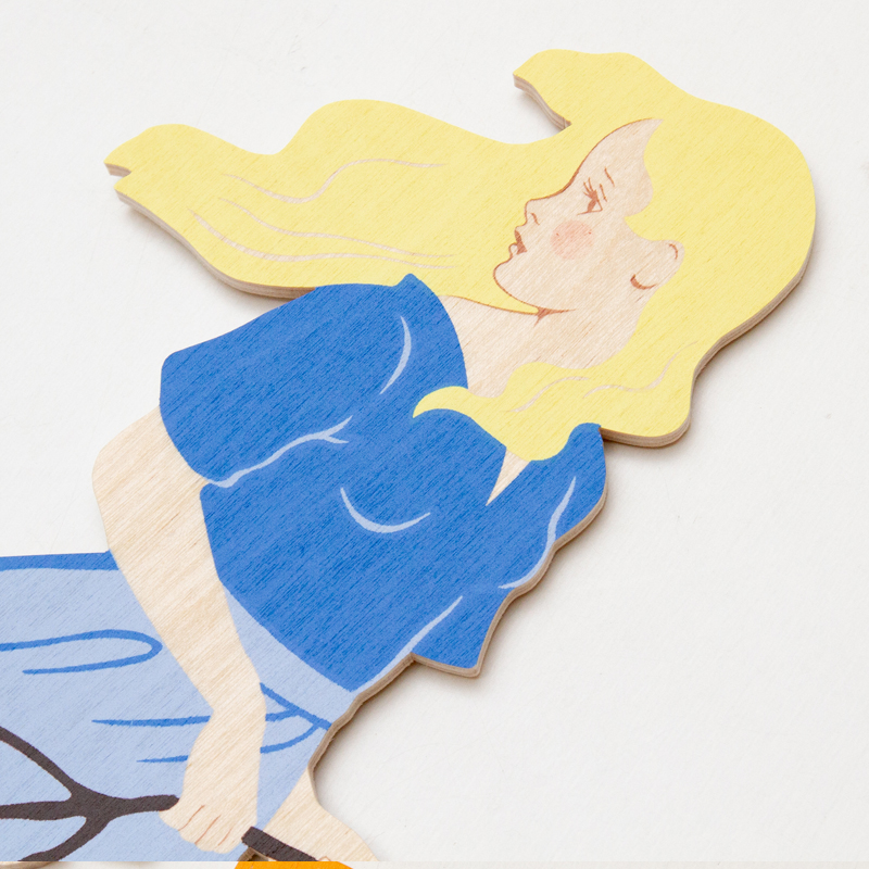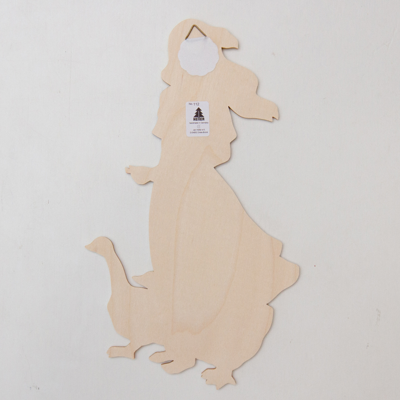 ドイツ・ヘラー社の壁掛けの木製イラスト。初代ヘラー夫人のイラストレーションです。
