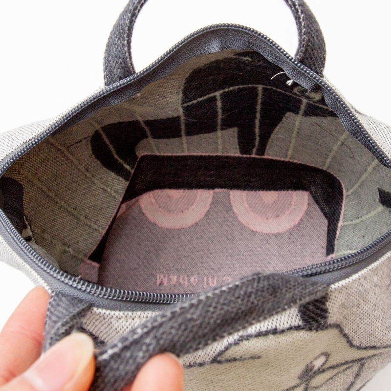 起毛加工されたジャガード織の柔らかい風合いになっているヒルダヒルダの電車をイメージしたバッグ。