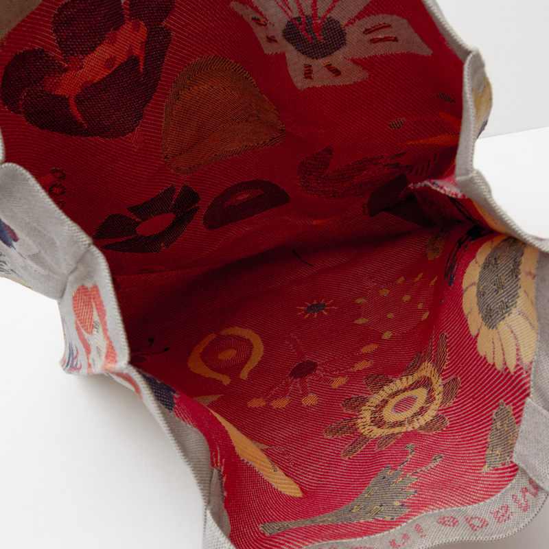 ジャガード織りされた柔らかい生地で、裏地にも綺麗にイラスト見えるのが特徴的です。