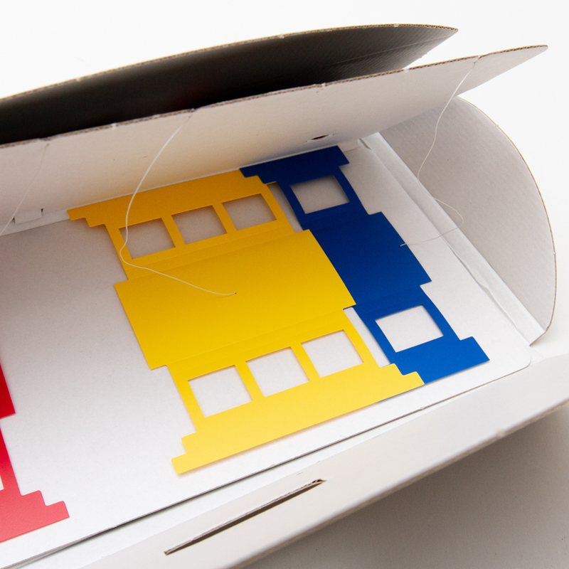 薄いプラスチックを組み立てて作り上げるモビールです。軽さが特徴のため、わずかな空気の動きでゆらゆらと動きます。