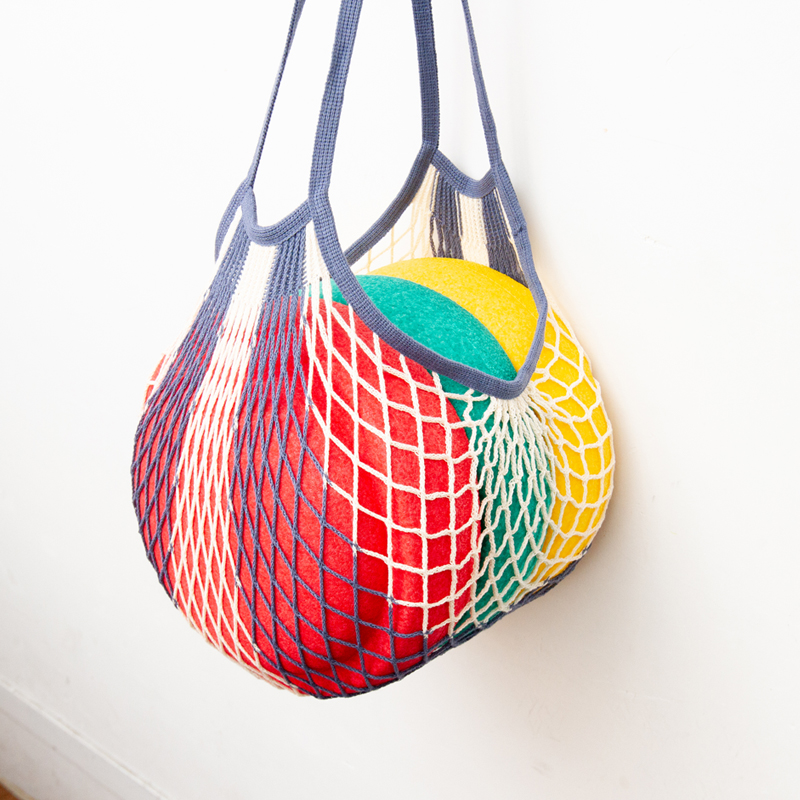 コットンの網状になっており伸縮性があるネットバッグ。見た目よりたくさん入ります。