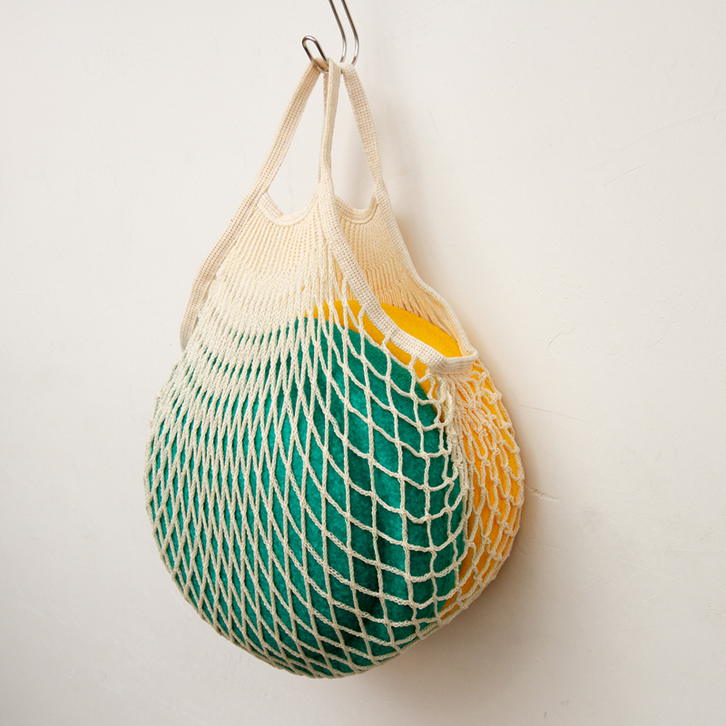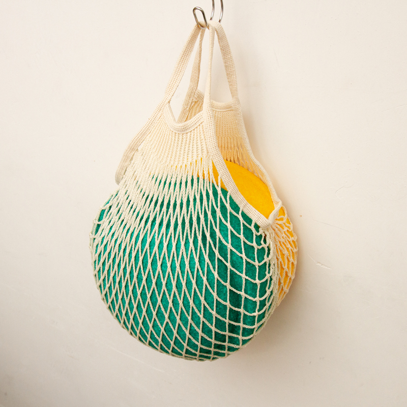 コットンの網状になっており伸縮性があるネットバッグ。見た目よりたくさん入ります。