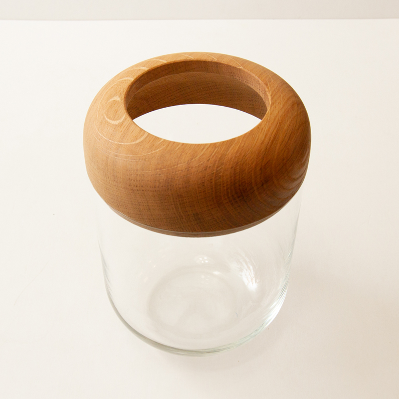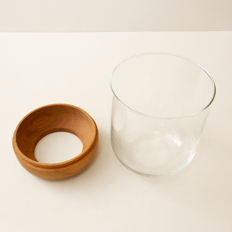 オーク材とガラスの組み合わせがシンプルで使いやすいデザインです。程よい重さがあるため安定しています。