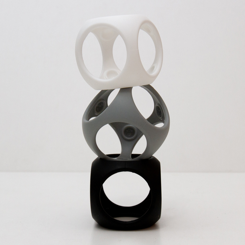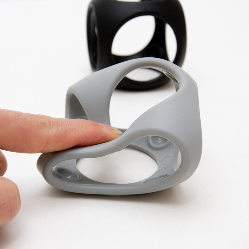 四角形の骨組みのような形をしたシリコン製のパーツはぐにぐに曲がったり潰せたりもしますが、ハリがあってピンと戻ります。思い切ってグニっとしてみて、いろんな遊びに使ってみましょう。