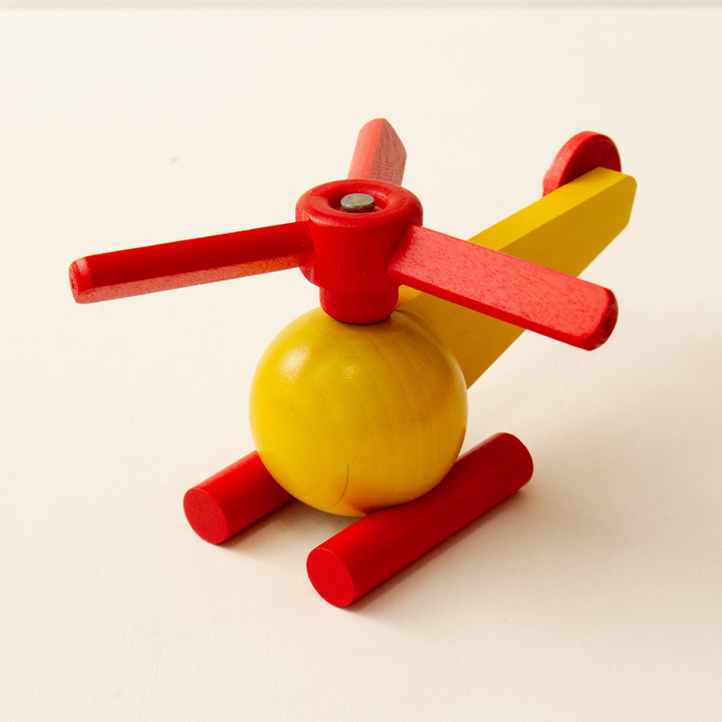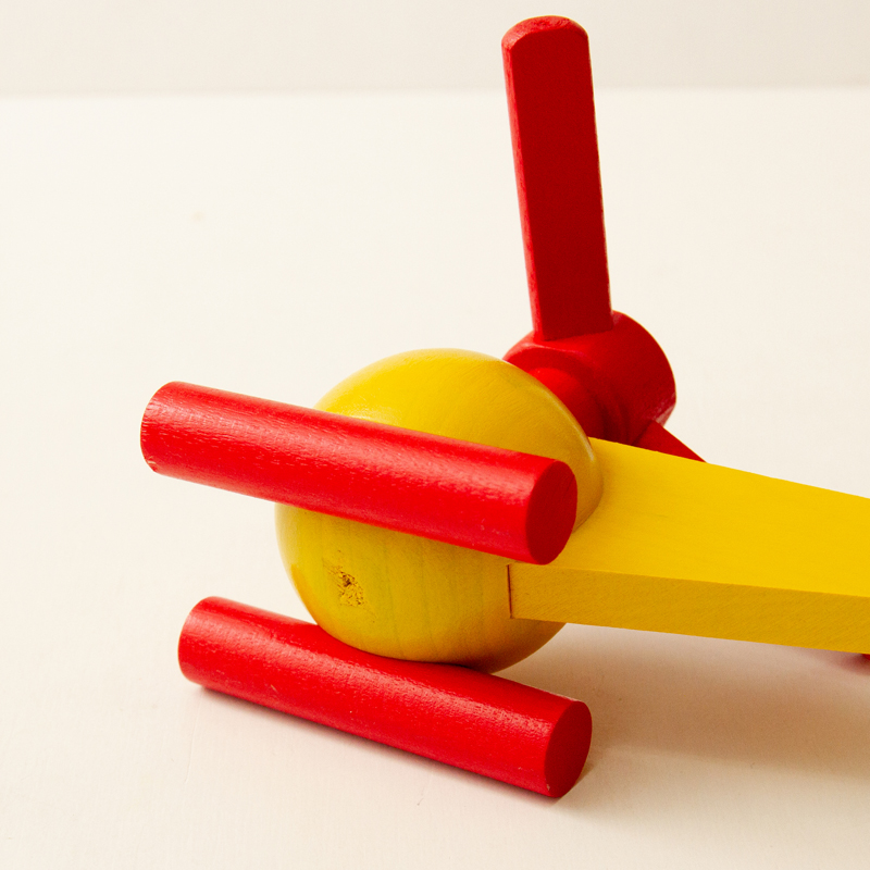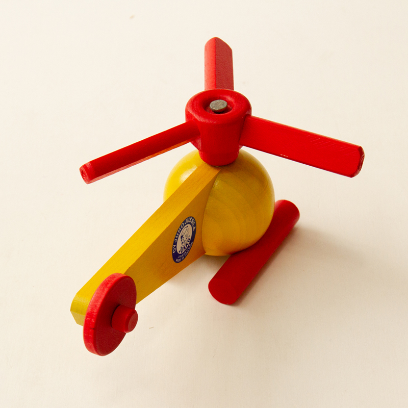 ボリューム感があるヘリコプター。ユシラ社の玩具でよく見られる黄色と赤の組み合わせです。