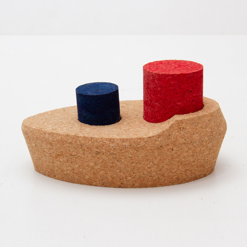 ボートの形をしたコルクの玩具。ボートとして遊んだり、穴にパーツを入れてみたり。