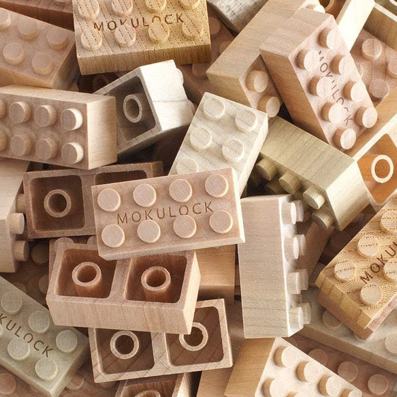 いわゆる「木製のLEGO」。精密加工されたパーツは様々な位置で繋げることができます。