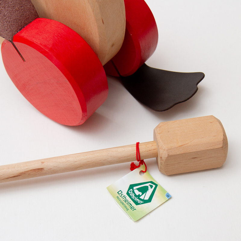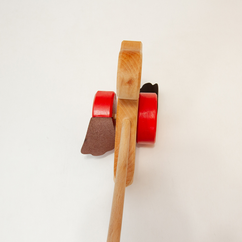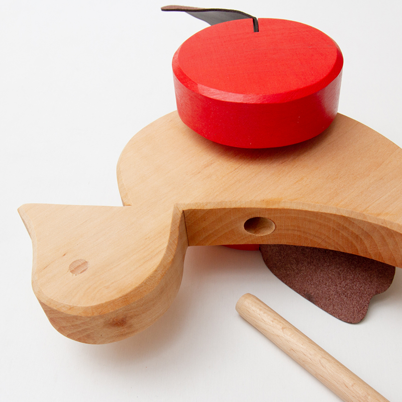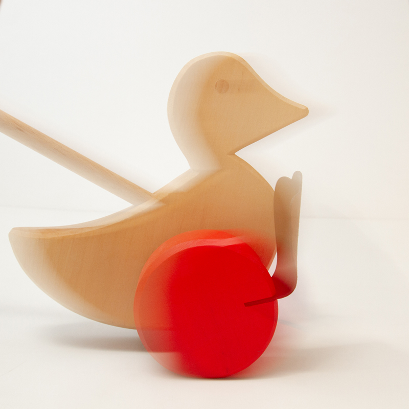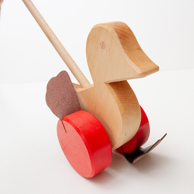 棒を掴んで押しながら歩くことで、アヒルの車輪に付いた足がパタパタと音を立ててまわります。