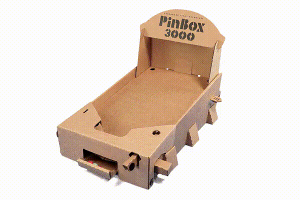 ダンボールのパーツをプラモデルのように組み立て、ピンボールを作るキット。