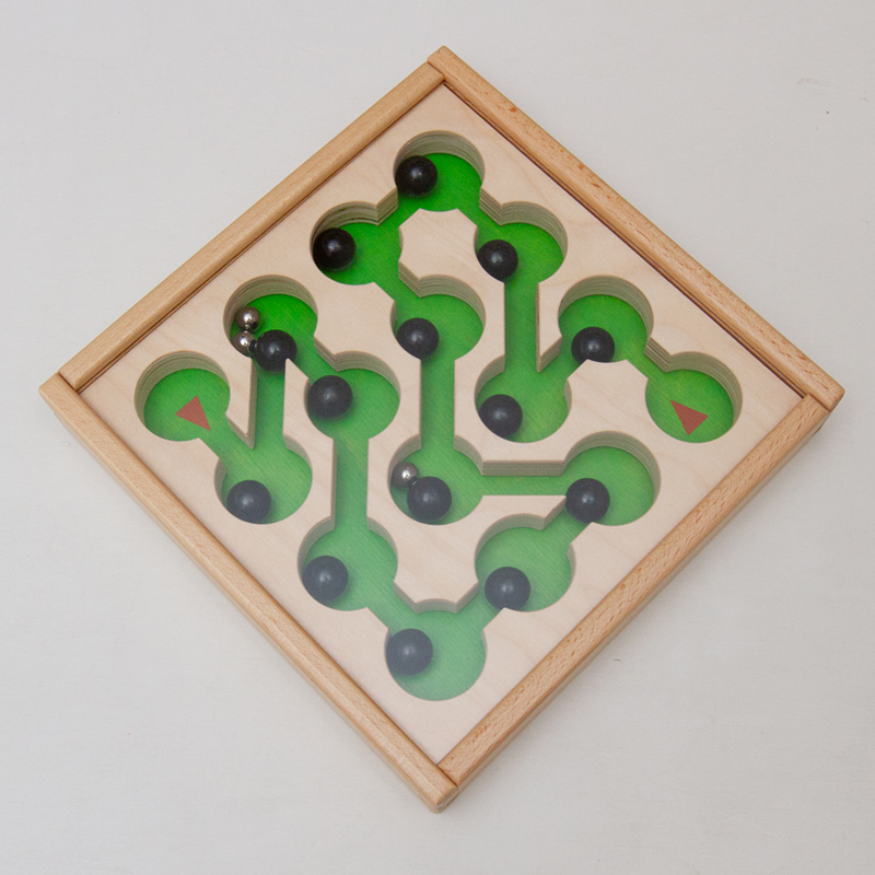 その迷路を3つの鉄の玉すべてゴールまで移動させることを目指します。