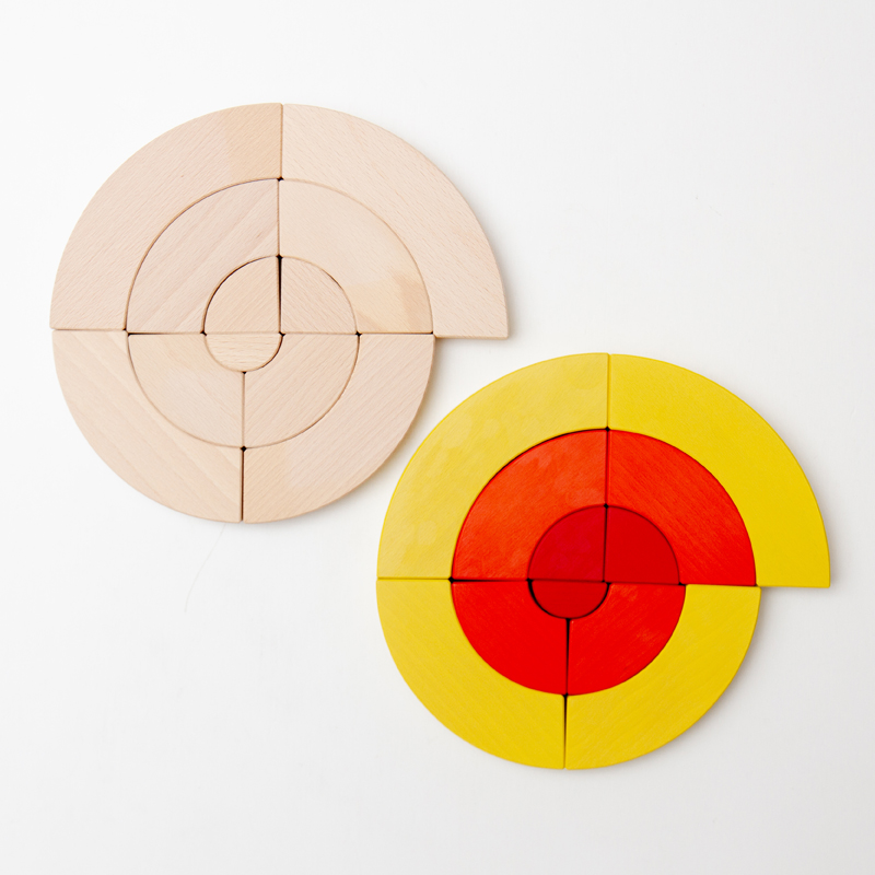同じサイズと色が2個ずつ入っていて、同じサイズの色付きと白木をそれぞれ合わせるとリングになります。