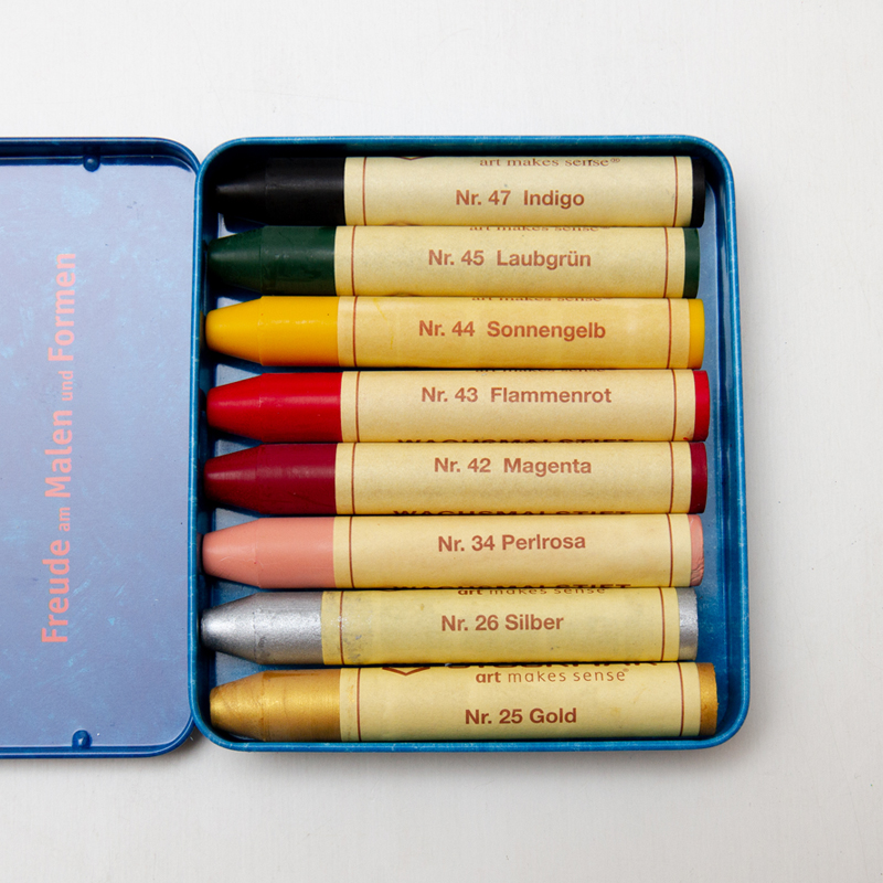 シュトックマーの蜜蝋クレヨン、スティックタイプの金や銀などが入ったアートカラーというセットです。