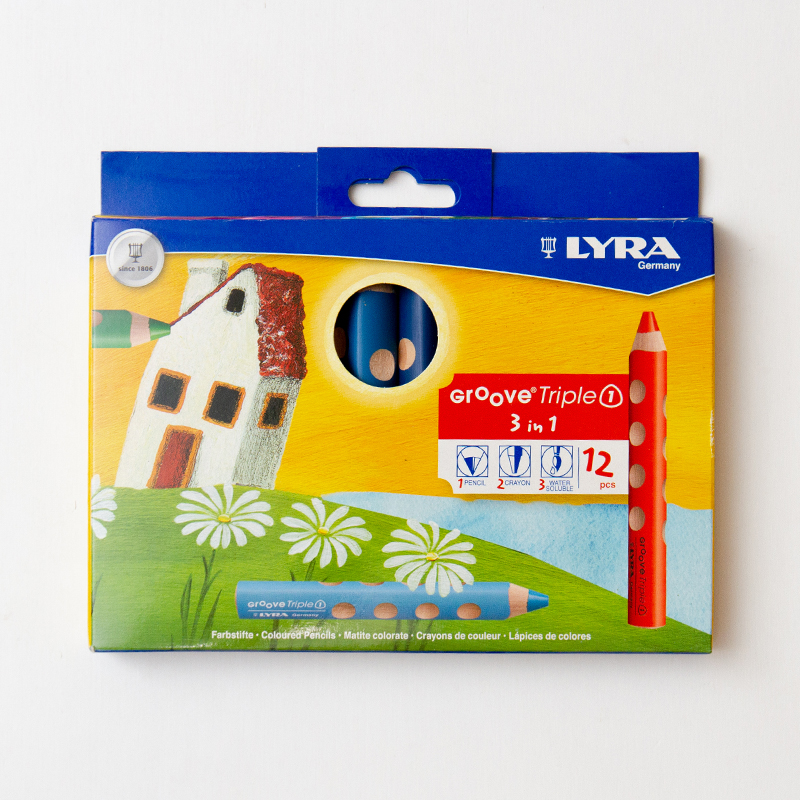 色鉛筆、クレヨン、水彩の3種の描き心地が楽しめる水彩色鉛筆。