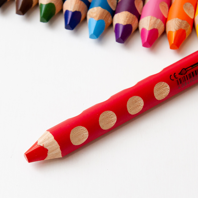 柔らかめの芯なので弱い力でも色が出やすく、軸が短く太いので、小さな手でもお絵かきを存分に楽しめます。