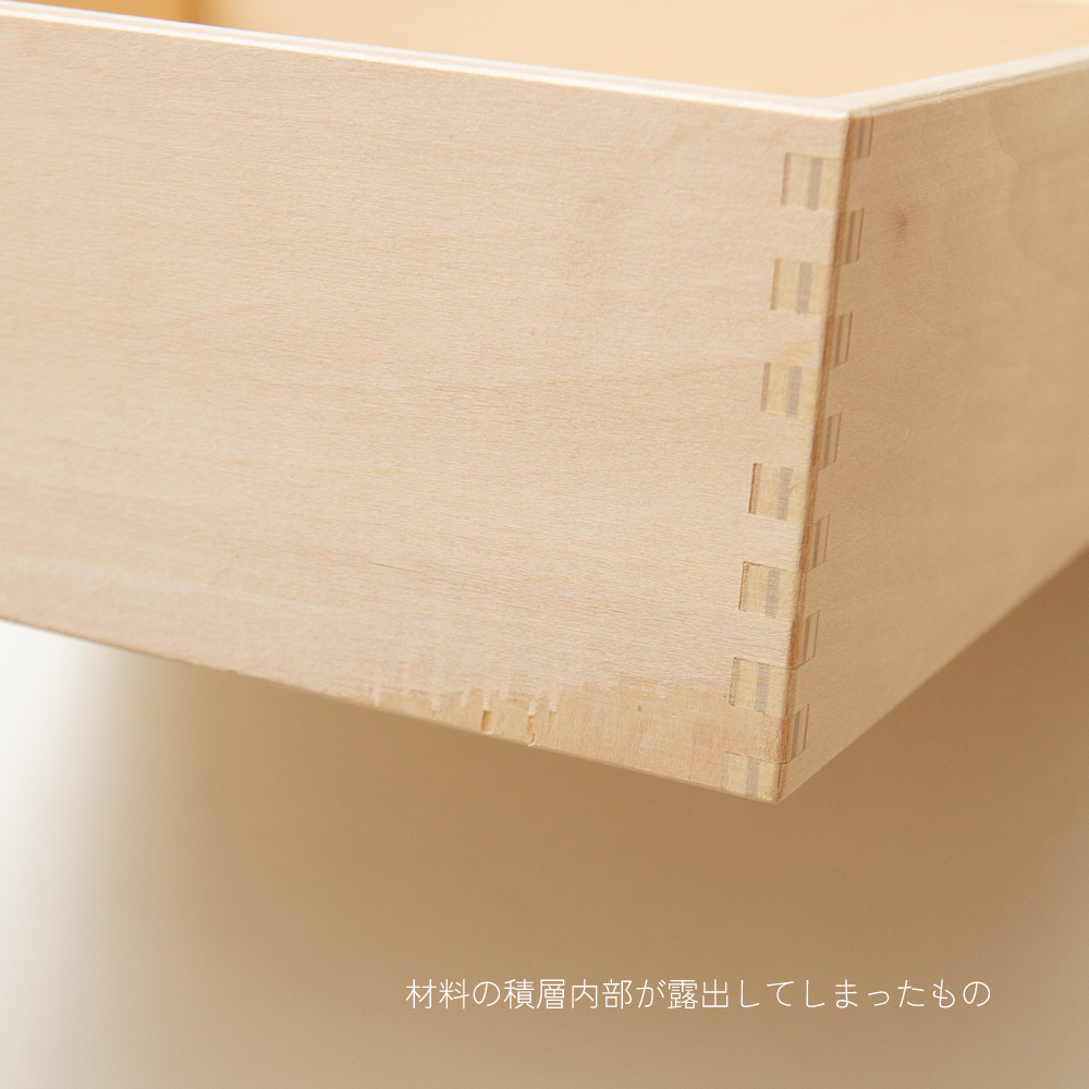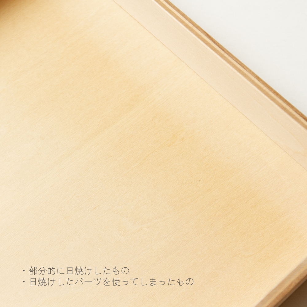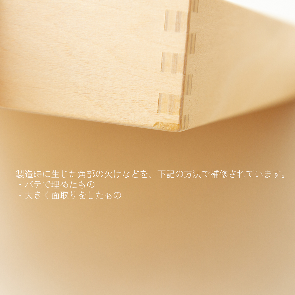 木箱としての機能はありますが、表面や角部、細部に通常販売品の基準に満たない箇所があります。