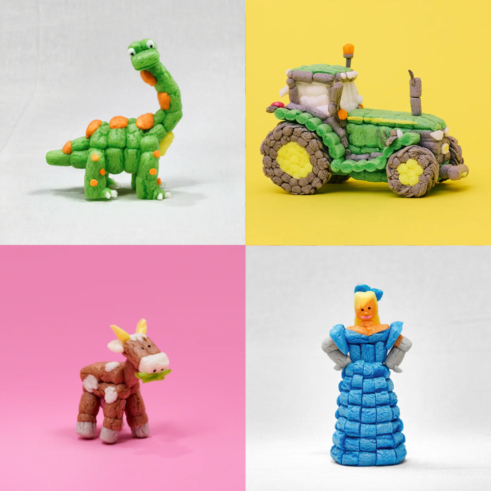 ほんの少し水で湿らせるだけで、パーツ同士や紙にも接着できる工作材料プレイマイス。