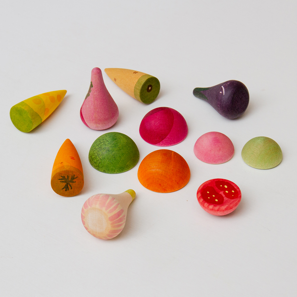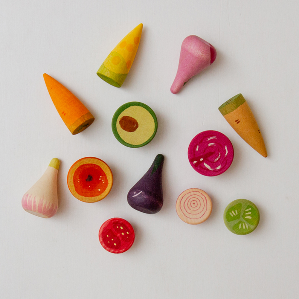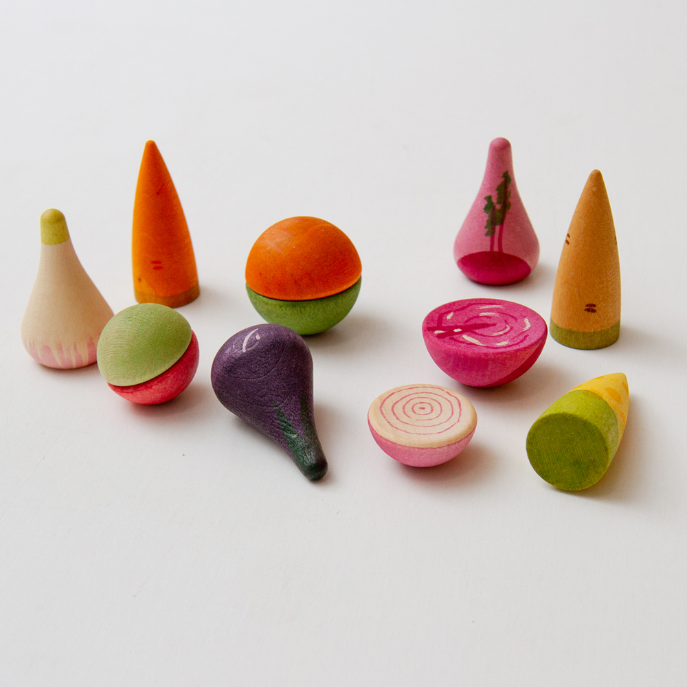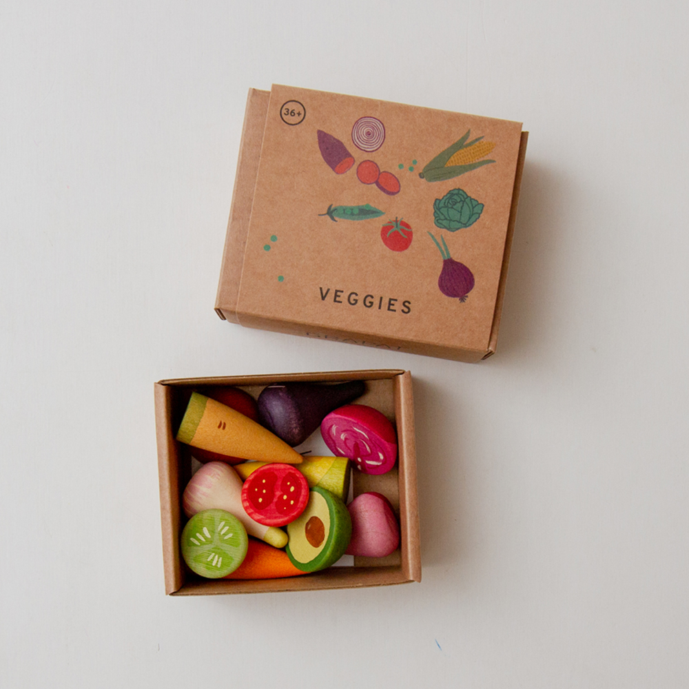 ミニ・ベジー。小さくてかわいい、色とりどりの野菜たちのピースがたくさん入っています。