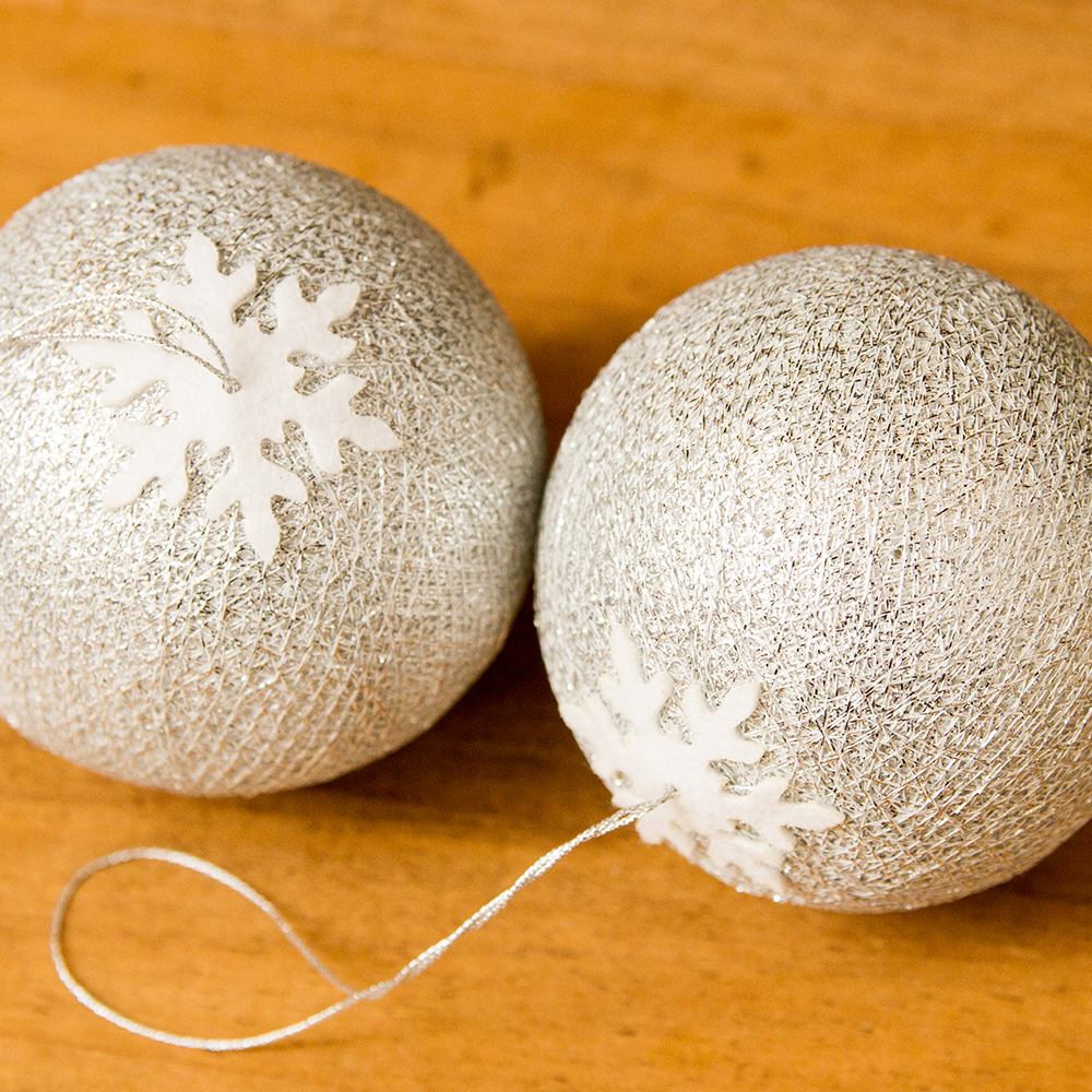 ラメ入りの糸で幾重にも巻かれたボールはゆらゆらと揺れる度にキラキラと光り、素材感と相まってとても存在感があります。