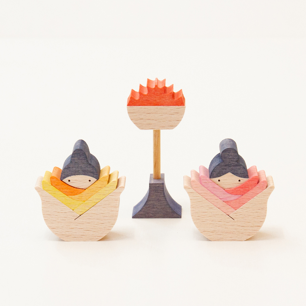 一枚の板から丁寧に切り抜かれた雛人形は、自然な木目を生かした柔らかな温もりを感じることができます。